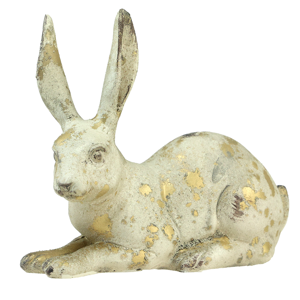 As if the decorative bunnies had been exposed to acid rain for years - the former white paint is gradually peeling off. The golden color, reminiscent of metal, is already flashing out of all the cracks. Black spots occasionally appear on the eyes, ears and legs. These decorative figures look truly antique - the bunnies can be wonderfully showcased, and not just for Easter!