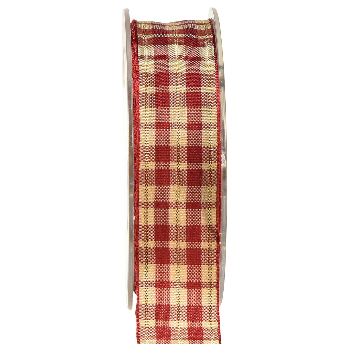 Enrich your decorative items with a touch of elegance and tradition. Our check ribbon is inspired by the classic country house style and its harmonious color combination of red, beige and gold offers endless design possibilities for craft enthusiasts, decorators and florists.