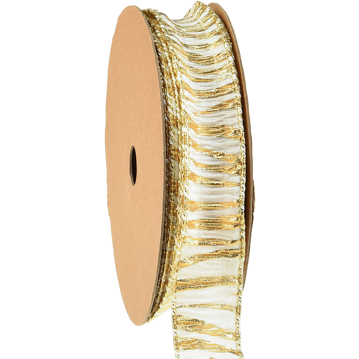 Product name: Decorative ribbon chiffon white/gold 25mm 15m