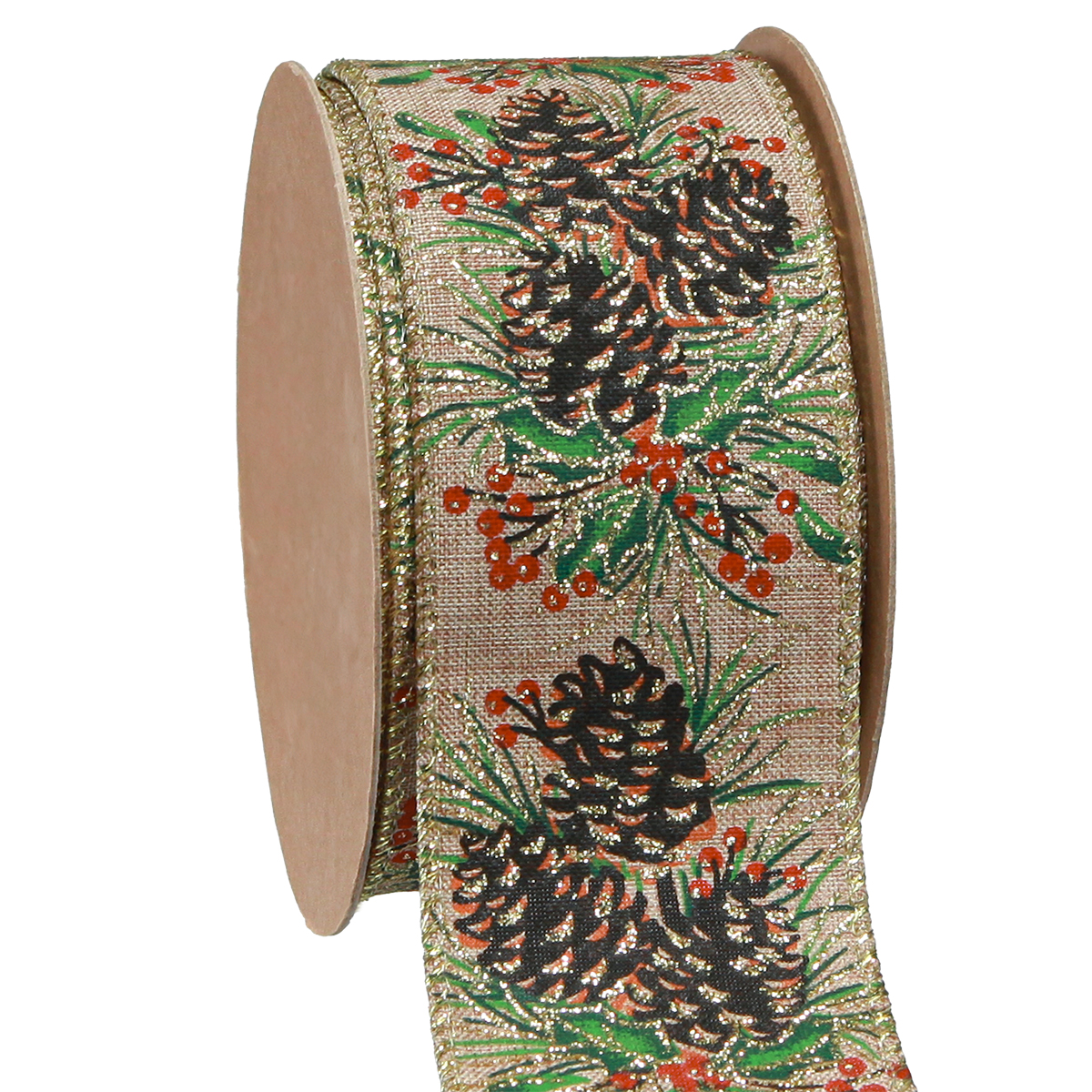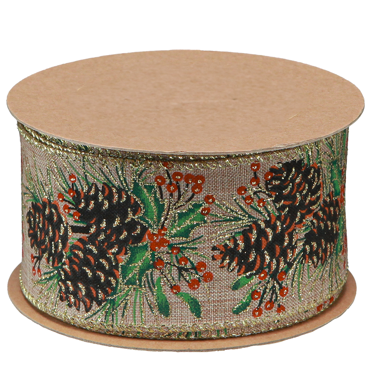 Decorative ribbon Christmas cones wide gift ribbon natural 60mm 10m