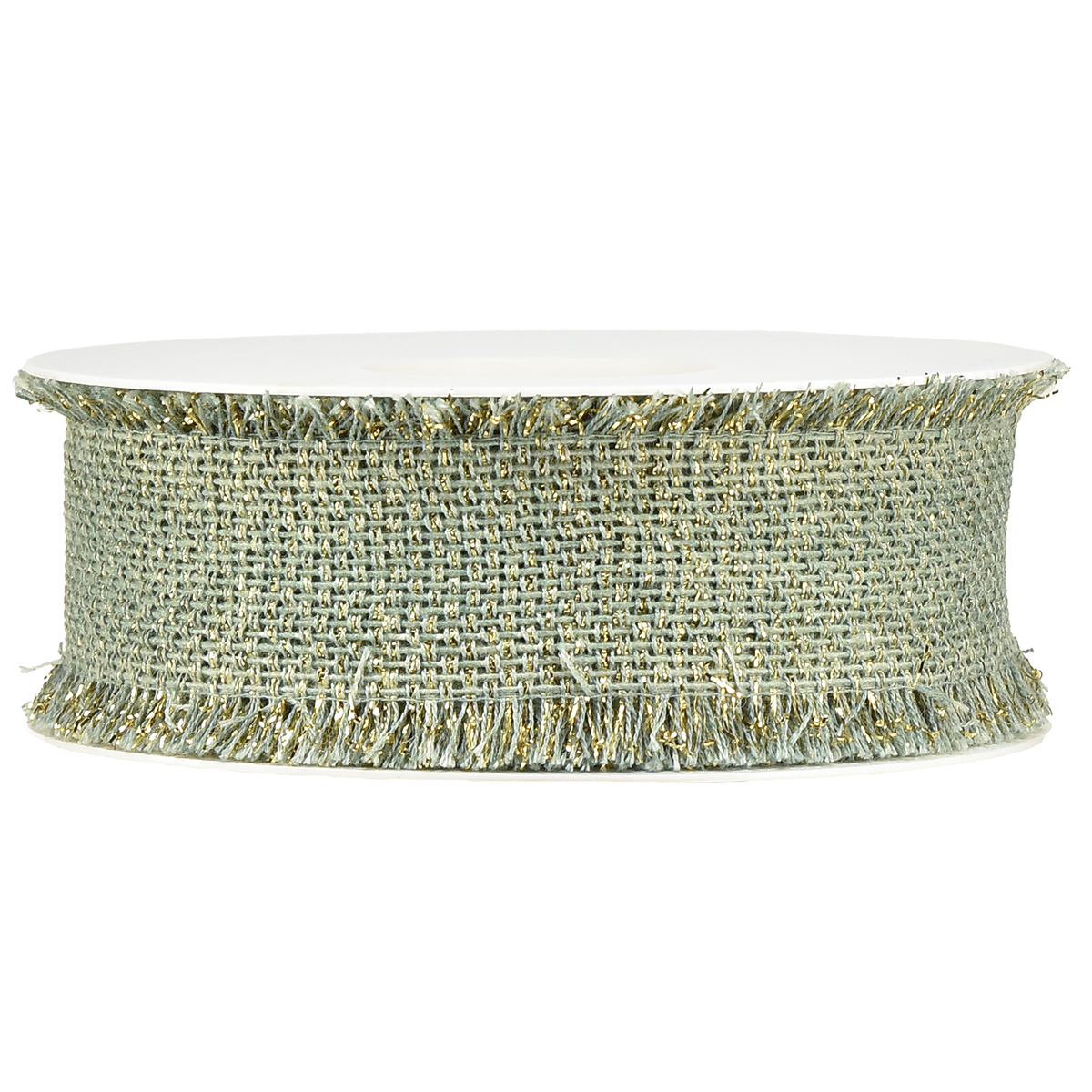 Give your Christmas decorations a touch of elegant shimmer with our decorative ribbon in light green and gold with fringes. This high-quality decorative ribbon transforms every decoration into a festive highlight and offers countless design options for the Christmas season and beyond.