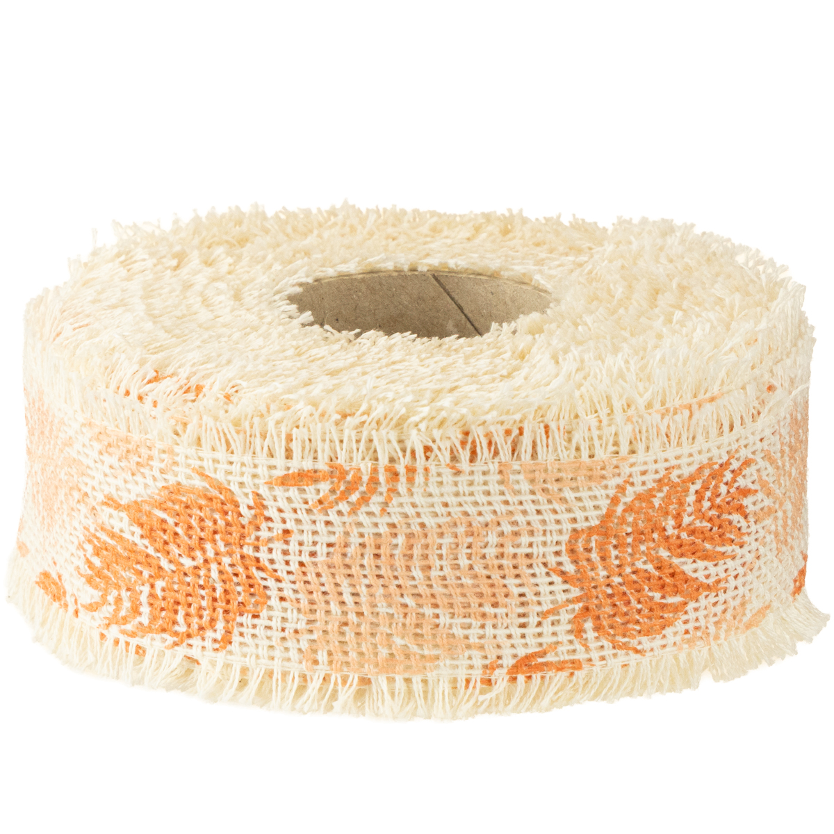 Feathery leaves in lighter and darker orange are printed on the naturally cream-colored cotton. By using the natural material cotton, the band is biodegradable and therefore more sustainable than comparable bands with plastic content. The “Go Green” label confirms the environmental friendliness of the decorative ribbon.