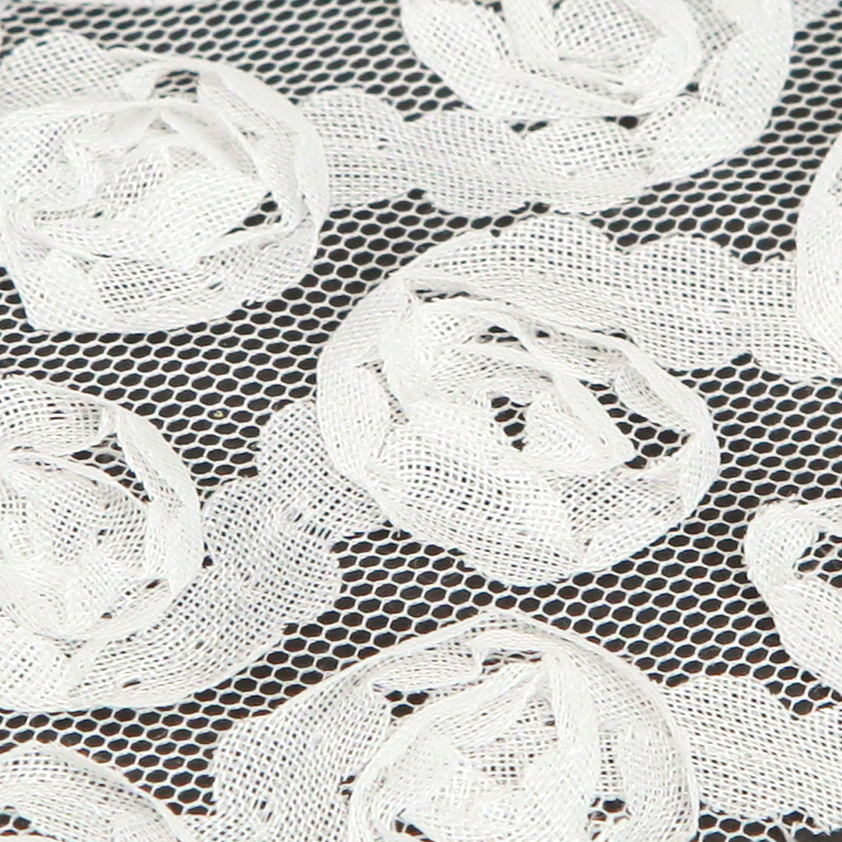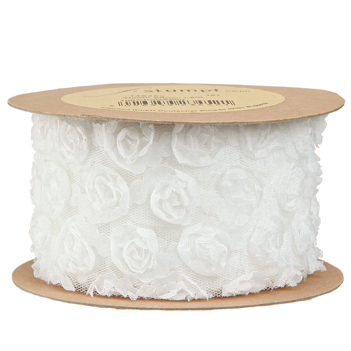 - Delicate translucent mesh ribbon with applied white roses