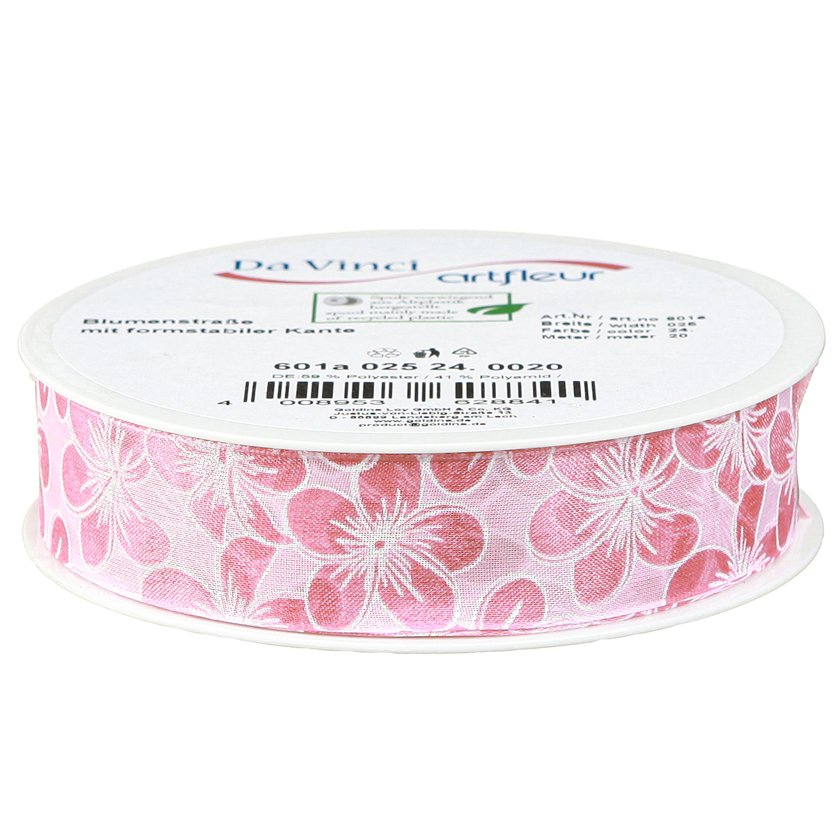Product name: Decorative Ribbon with Flowers Gift Ribbon Spring Pink 25mm 20m