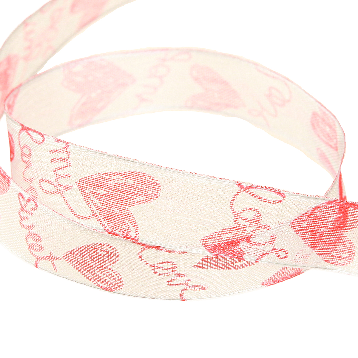Decorative Ribbon with Hearts Love White Red Organza Fabric 15mm 20m