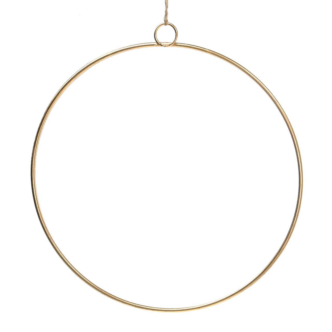 The delivery includes four metal decorative rings in the festive color of old gold. The ring has an approximate diameter of 35 centimeters and a thickness of about 4 millimeters. A soldered eyelet and a jute ribbon make it easier for you to hang it up.