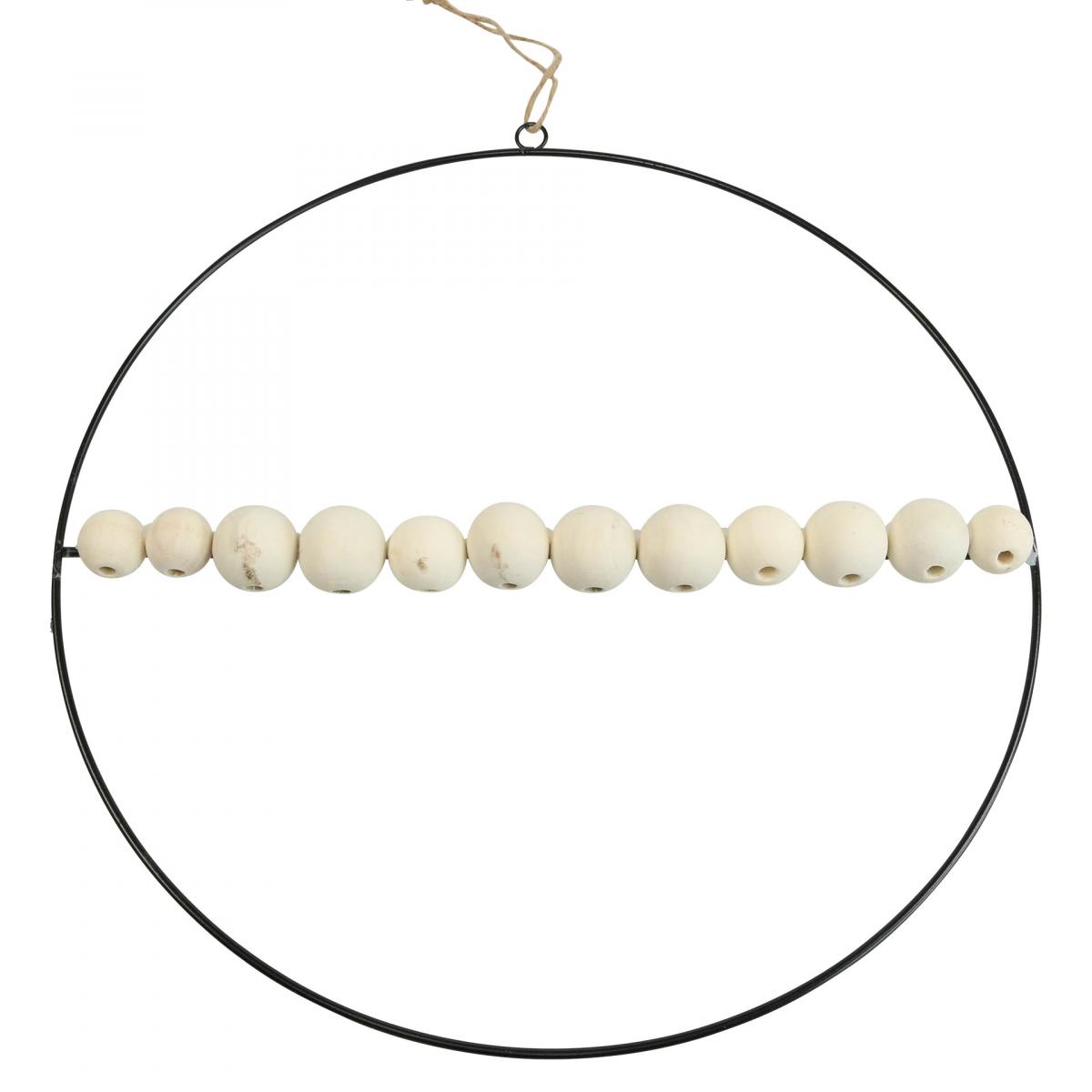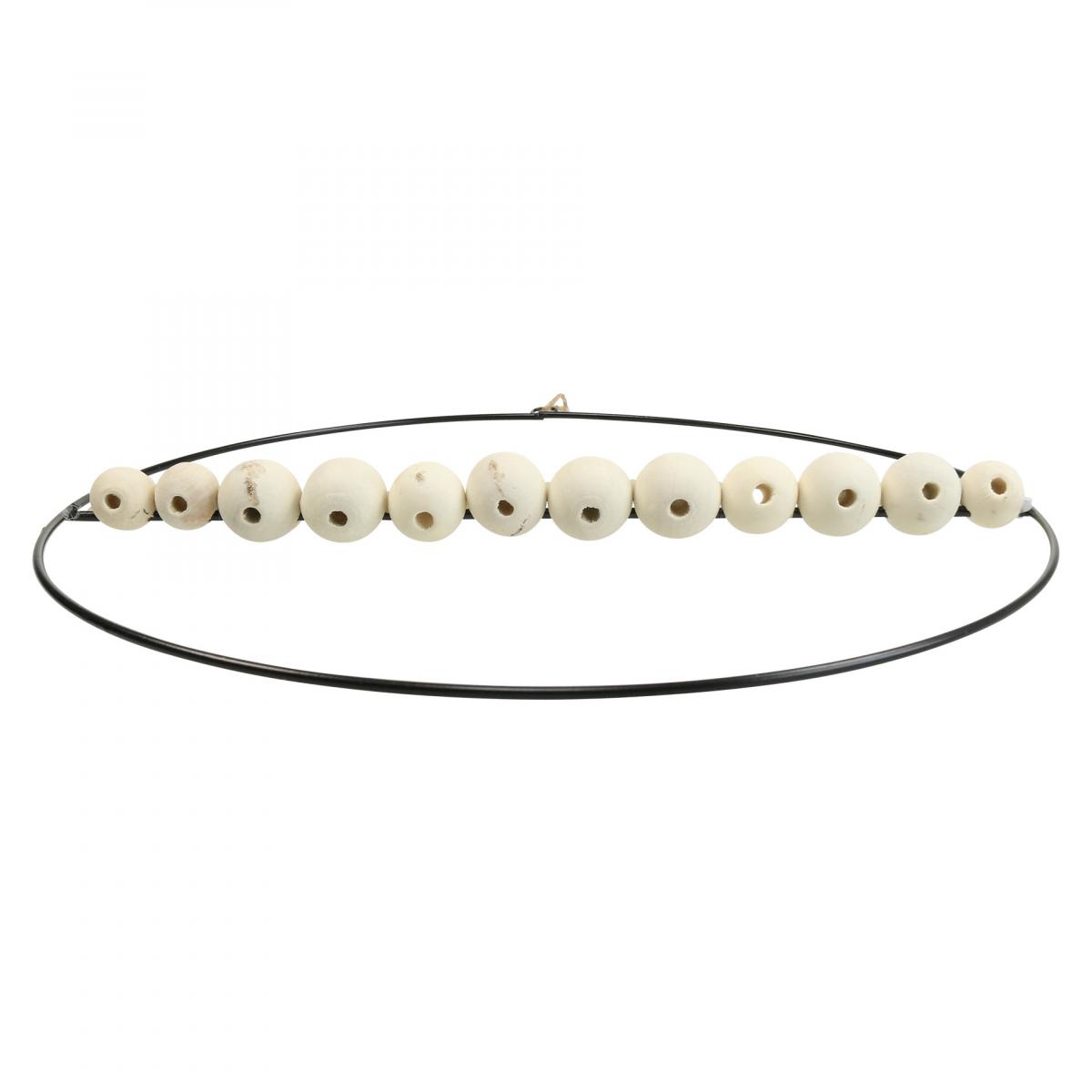 Product name: Decorative ring, metal, wooden beads, Ø30cm, black, white, natural, set of 4