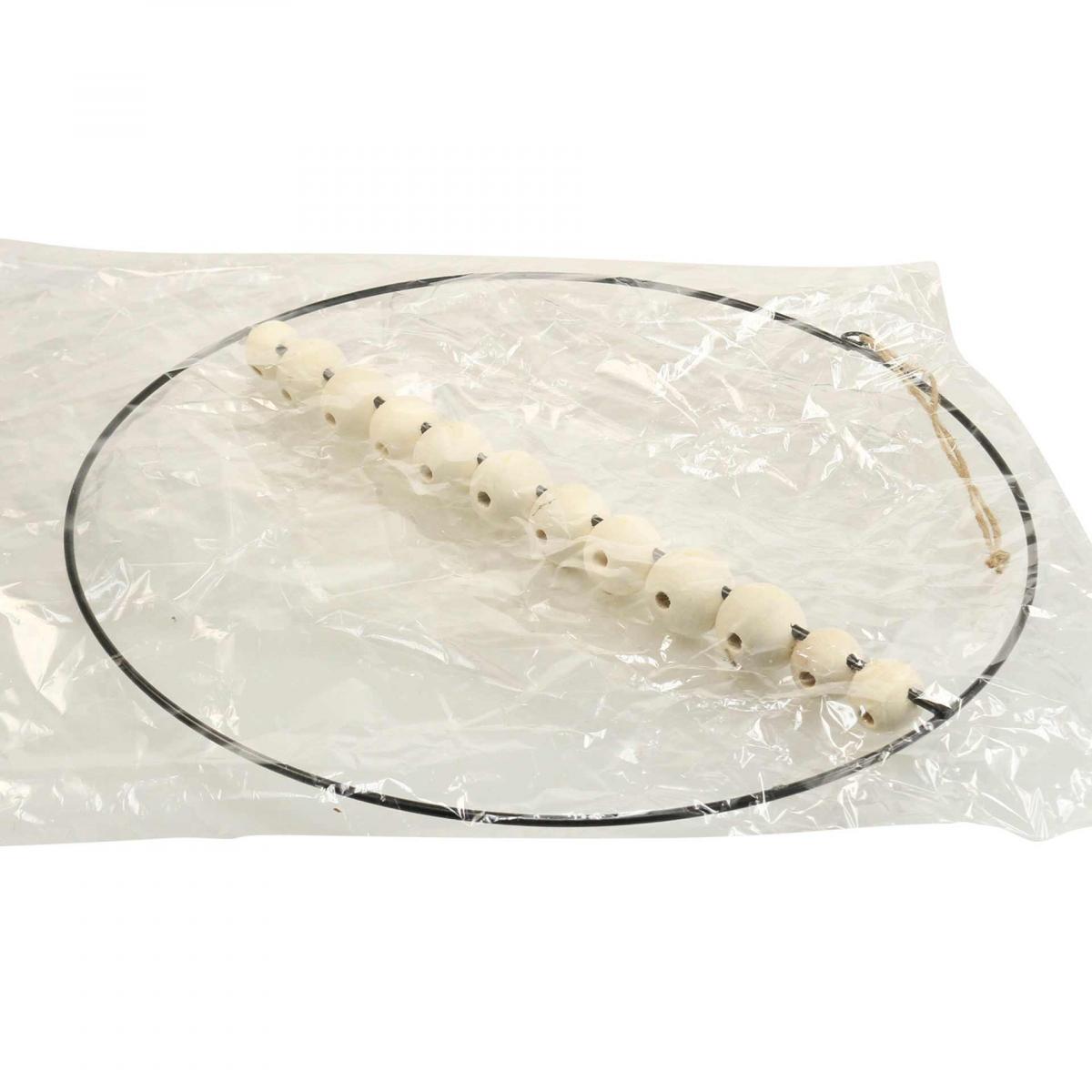 Decorative ring, metal, wooden beads, Ø30cm, black, white, natural, set of 4