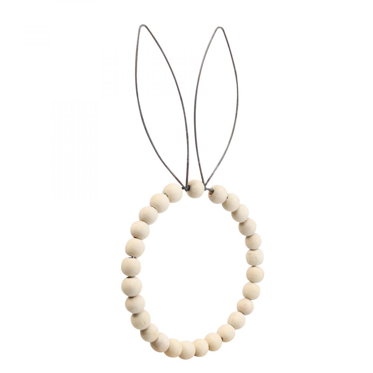 This rabbit decoration is also beautiful with a decoration with lots of wood. Because although the rabbit ears are made of metal, the base and the wooden beads dominate the appearance.