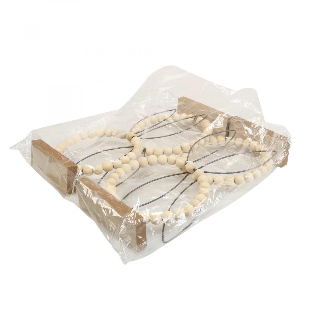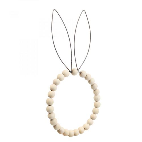 A decorative ring with rabbit ears - and you already have an original table decoration for Easter! This sweet bunny decoration stands on a wooden base. Wooden beads are threaded around the metal ring.
