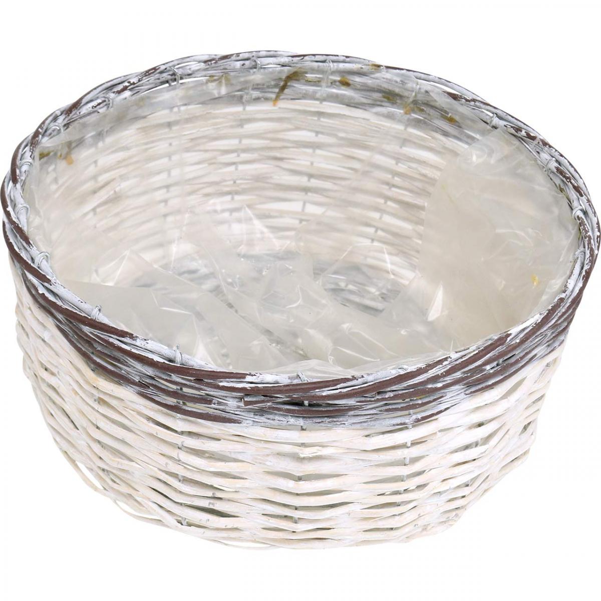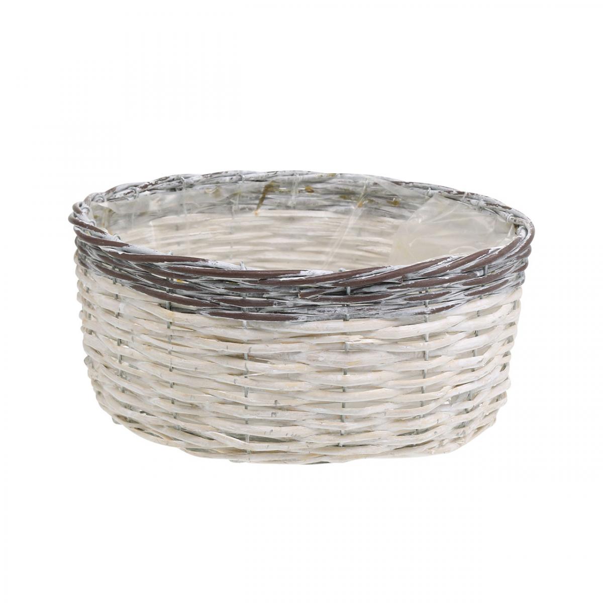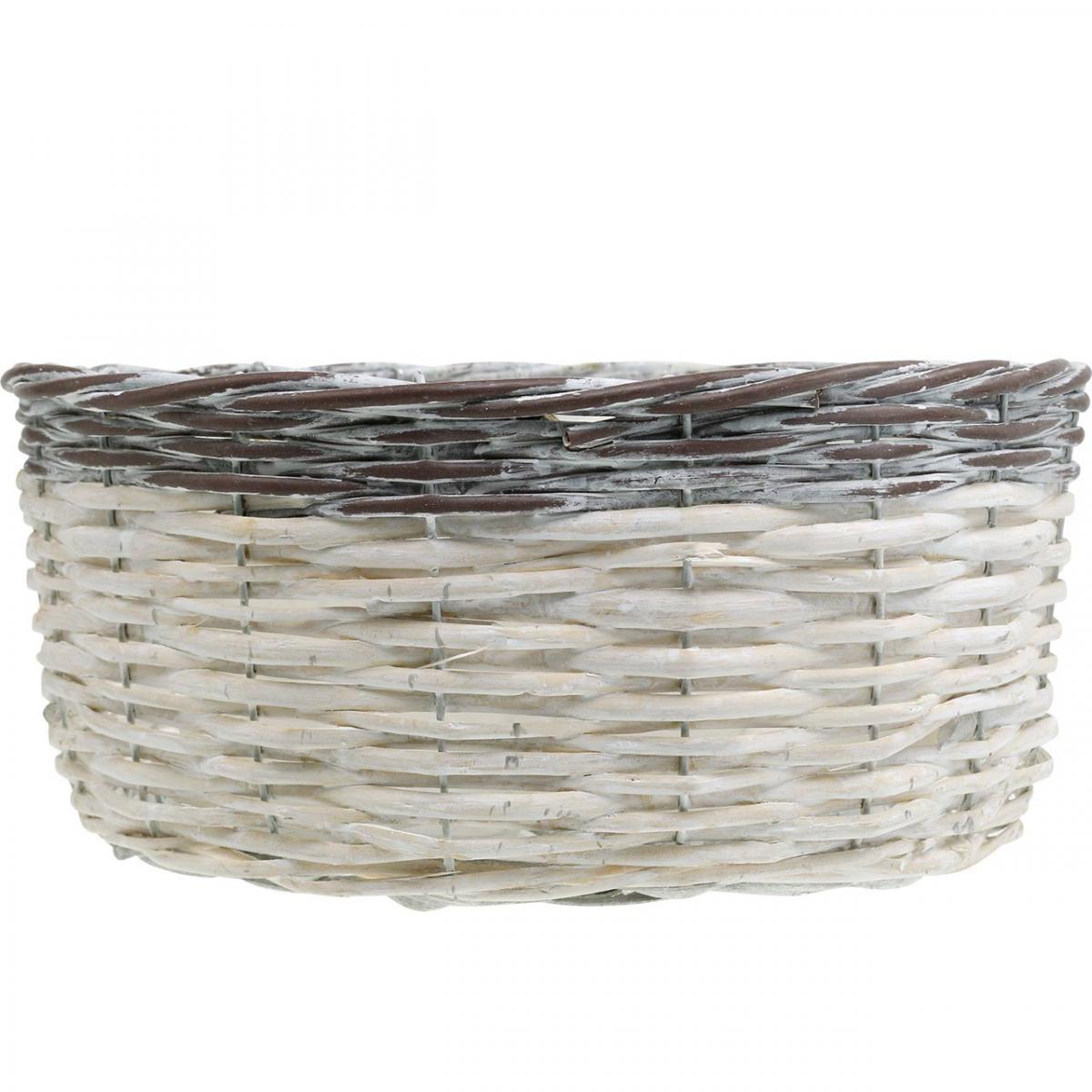 Product name: Decorative round basket, white and brown, Ø29cm, woven planter, gift, wedding decoration