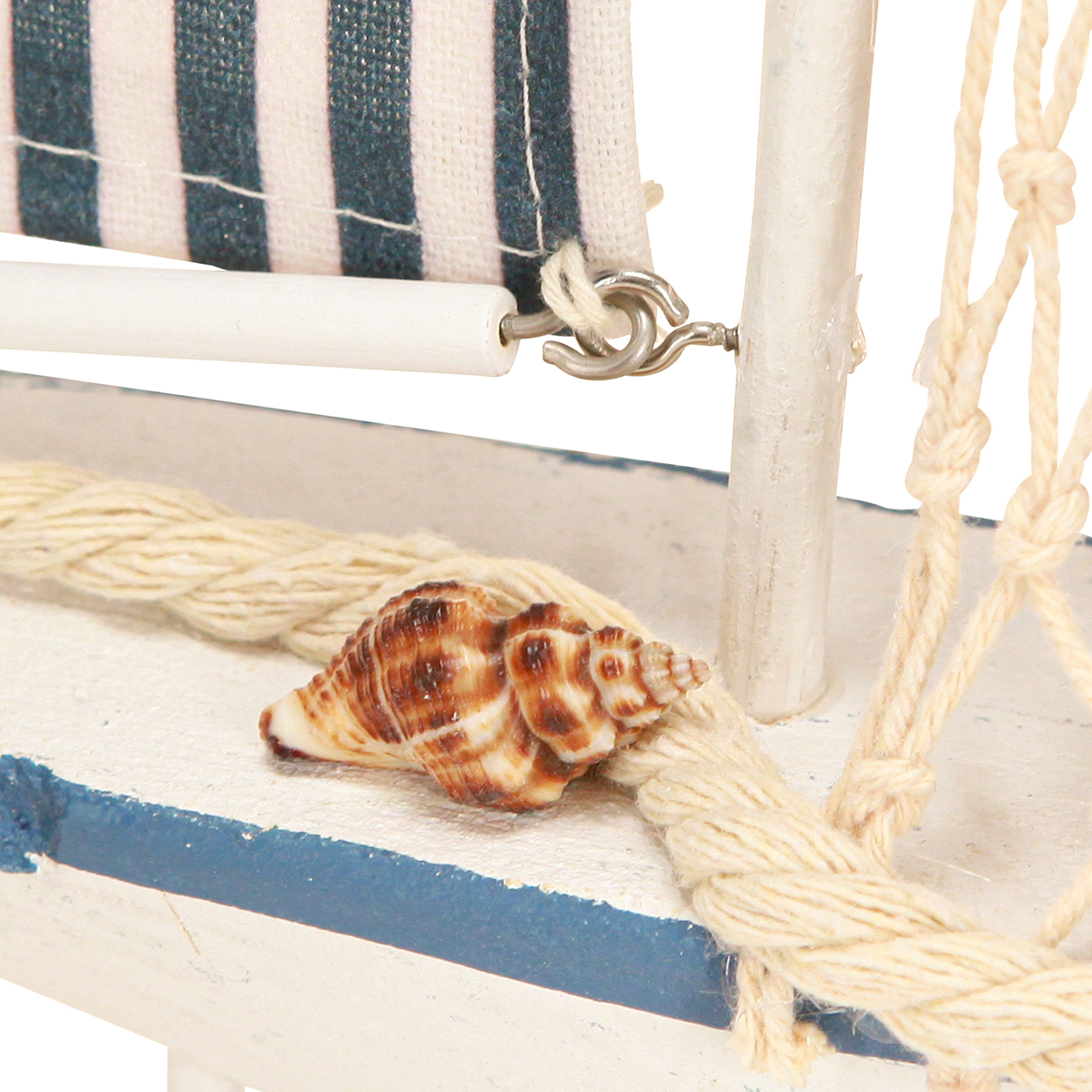 Add a stylish nautical touch to your home with our decorative pinewood sailboat. This white and blue jewel will breathe new life into any room and instantly lend it a nautical touch. Featuring a white hull and blue rim, the sailboat captivates with its charming design. The white and blue linen sail, accented by cream-colored macramé, seashells, a starfish, and snails, creates an authentic look. A sturdy wooden base ensures stability. Every detail demonstrates high-quality craftsmanship and underscores the nautical charm of this wooden decoration.