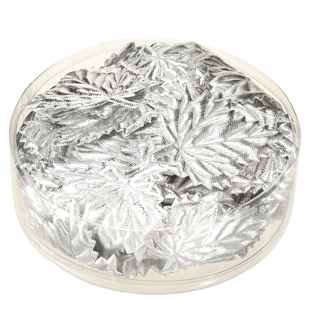 The decorative leaves made of in silver are delivered in a small box with a total of 60 pieces. Each leaf is about 5 centimeters in size.