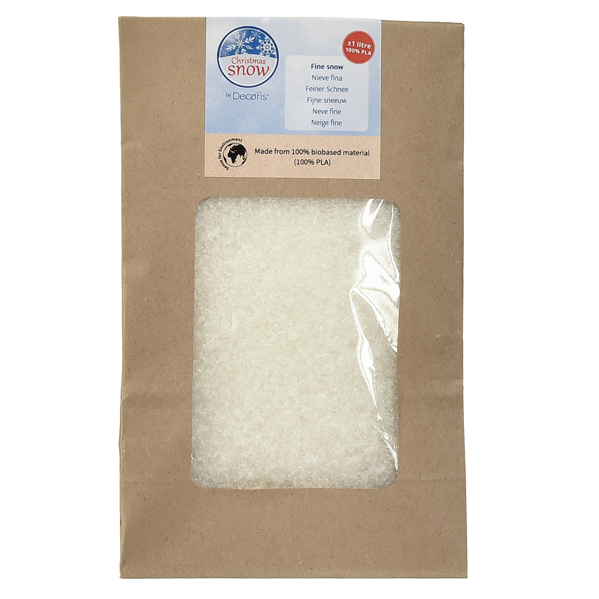This sustainable decorative snow is made from natural materials and is an unbeatable option for anyone who appreciates eco-friendly winter decoration. Transform your home or event into a snow-covered landscape without harming the environment. The practical 20g pack of bio-based decorative snow is perfect for creating small snow landscapes for nativity figures or as a highlight in your Christmas flower arrangements.