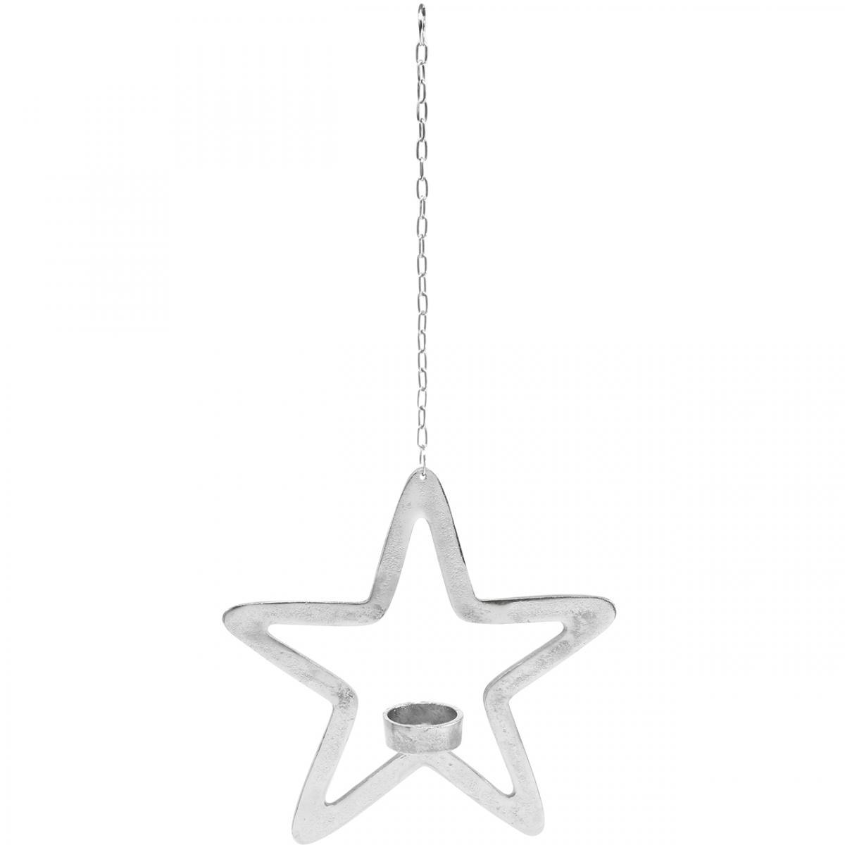 Decorative star tealight holder metal for hanging silver 24cm