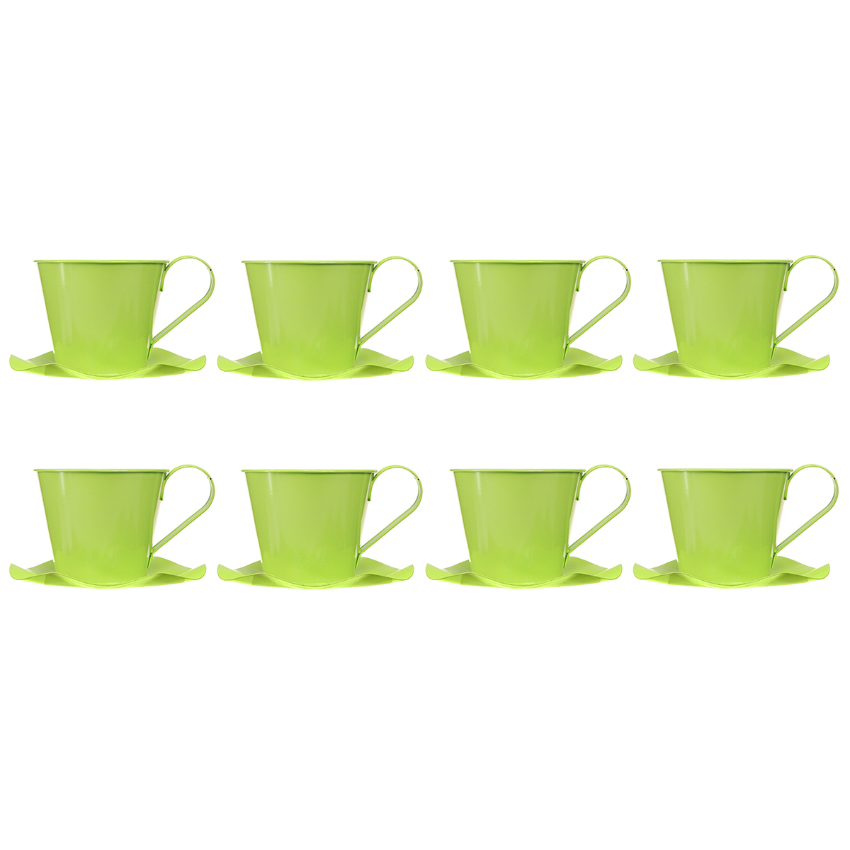 Decorative tea cup metal with plate light green Ø12 H10cm 8 pcs