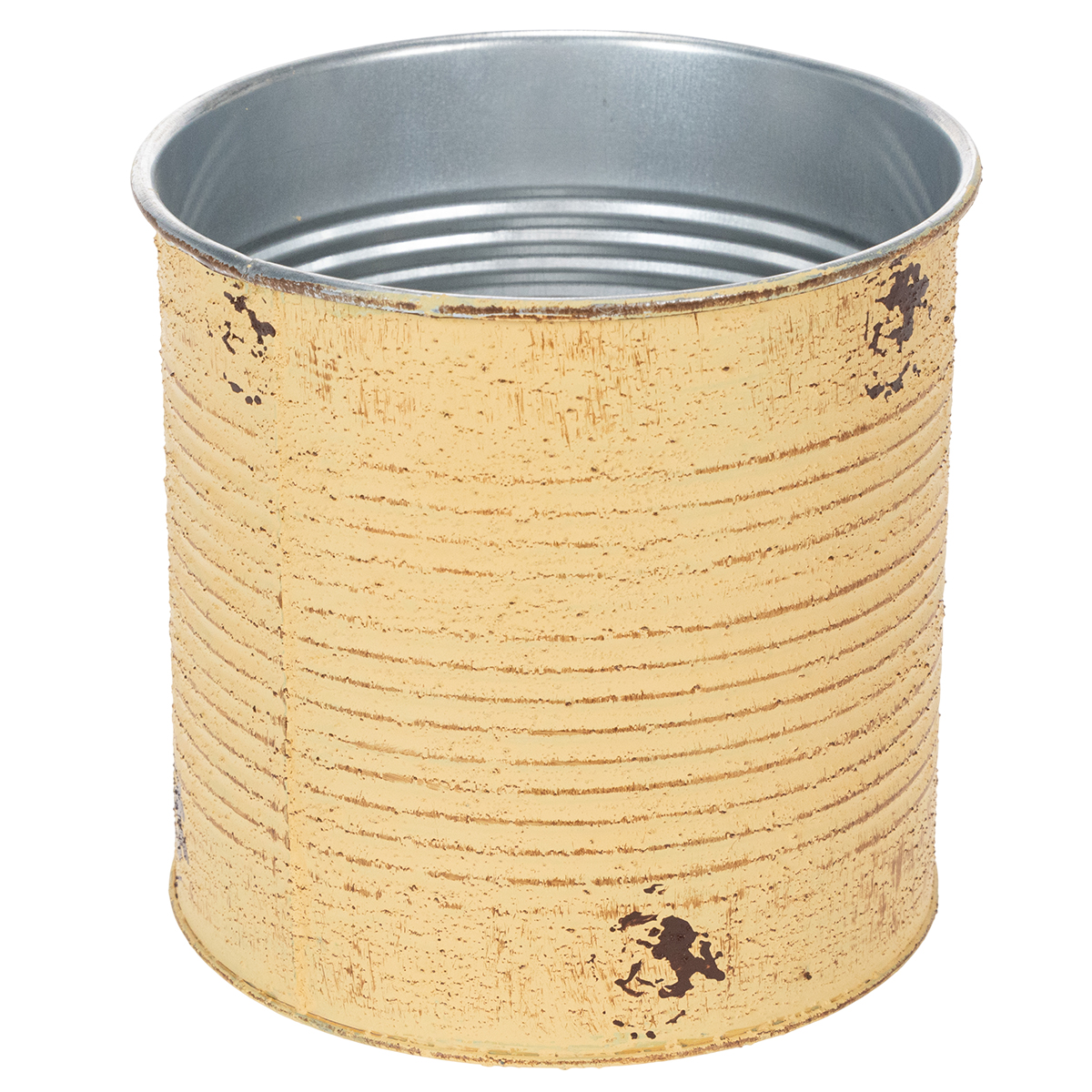 For planting, you should line the decorative box in apricot with foil, think about drainage and, if installed outdoors, drill holes in the ground to drain excess water. The rustic tin can is also available in various pastel colors and other sizes.
