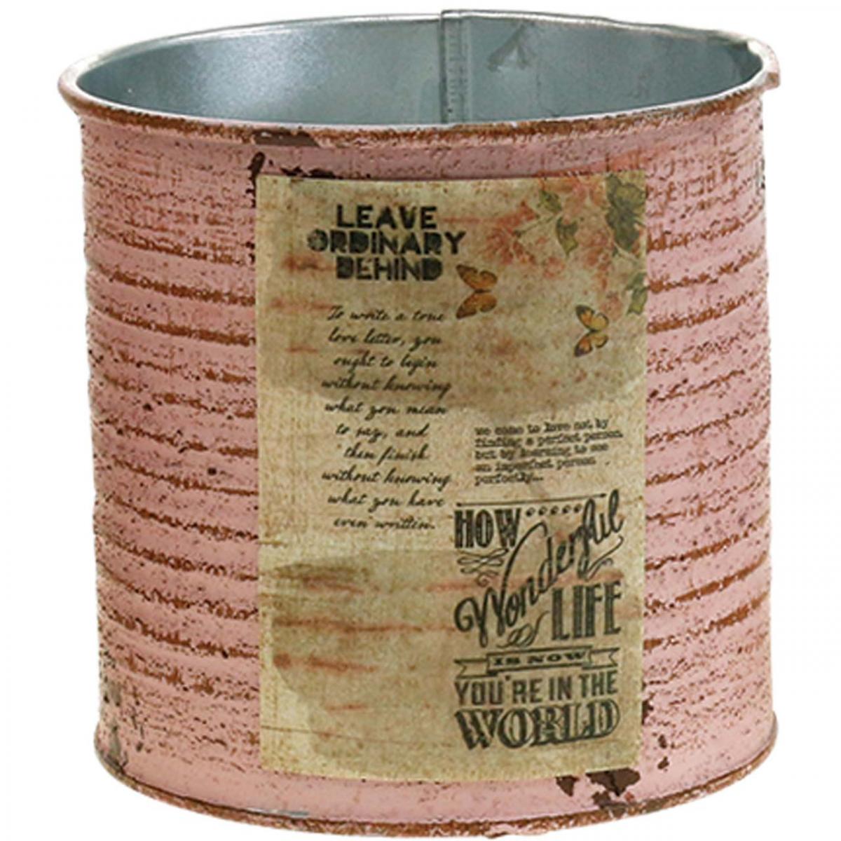 Decorative tin old pink metal tin can for planting Ø11cm ...