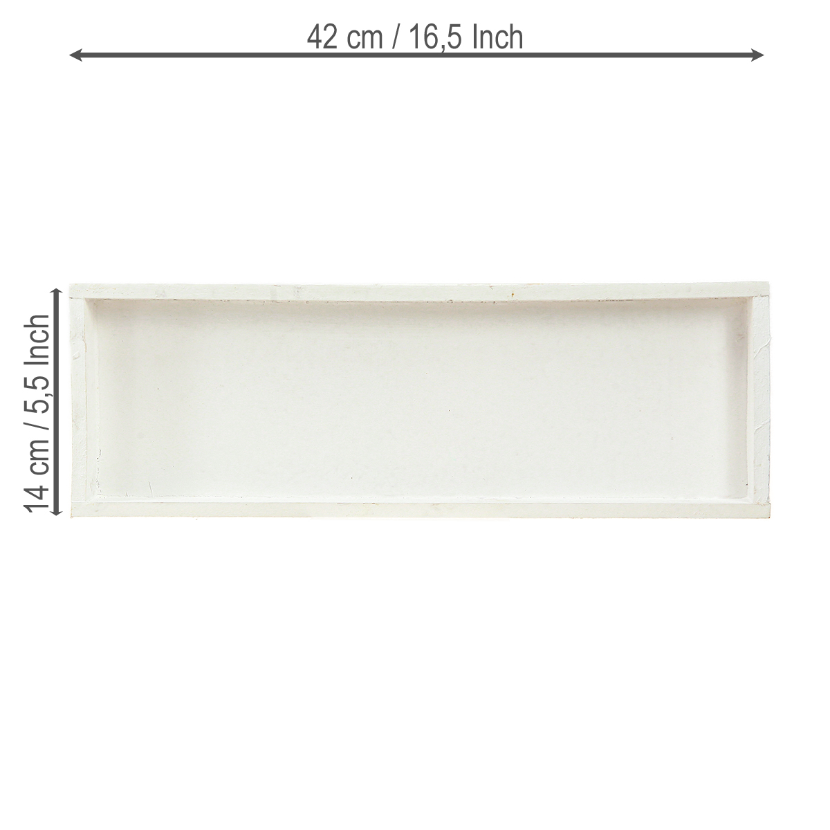 Decorative Tray Oblong Wooden Tray White Shabby 42×14×3cm 3pcs