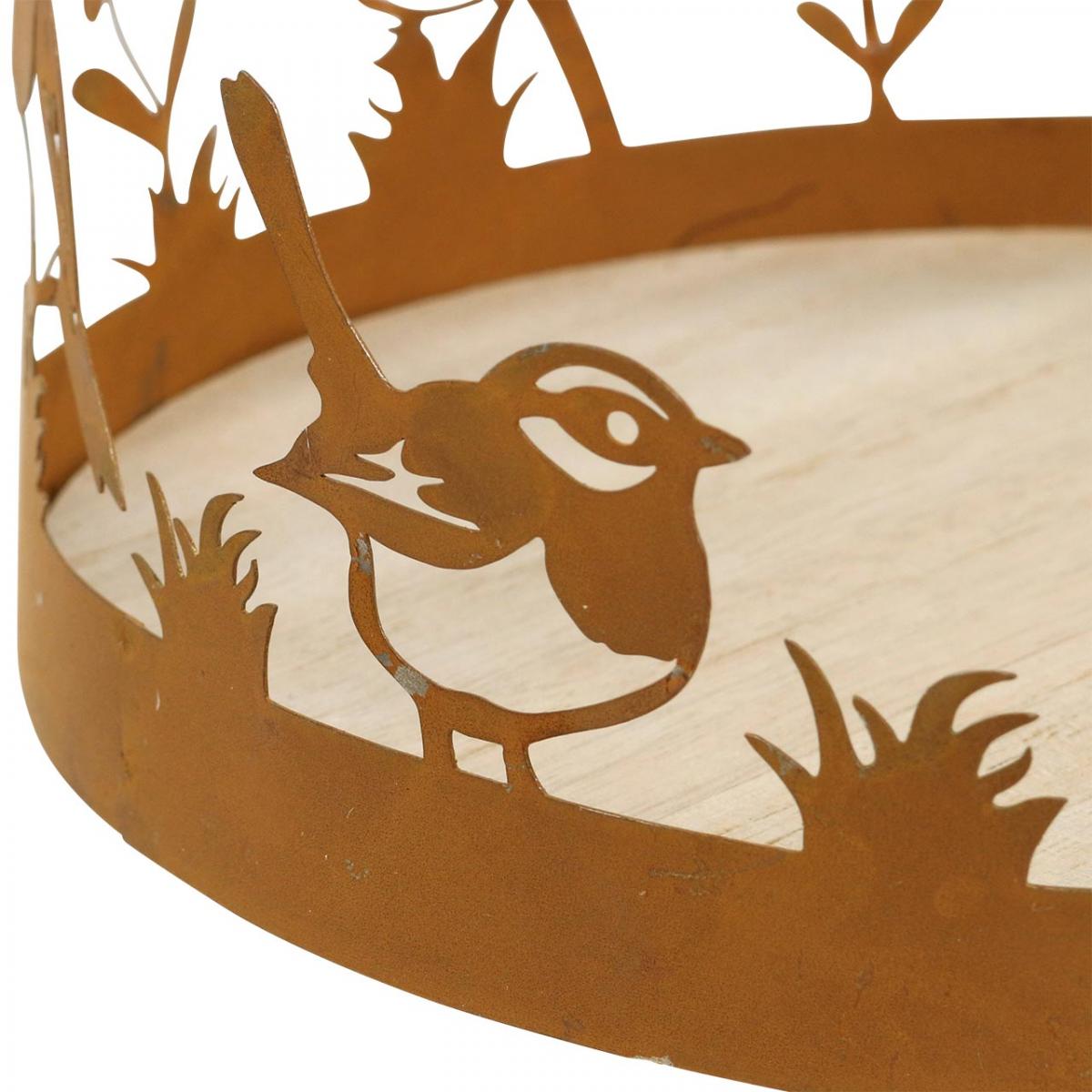 Decorative tray, table decorations with birds, spring decoration patina Ø20cm H8.5cm
