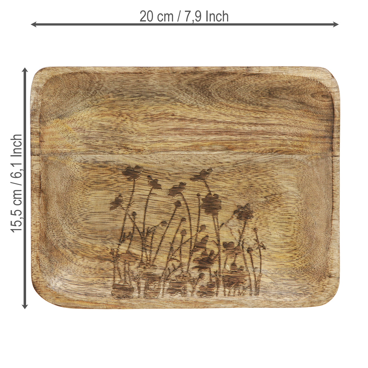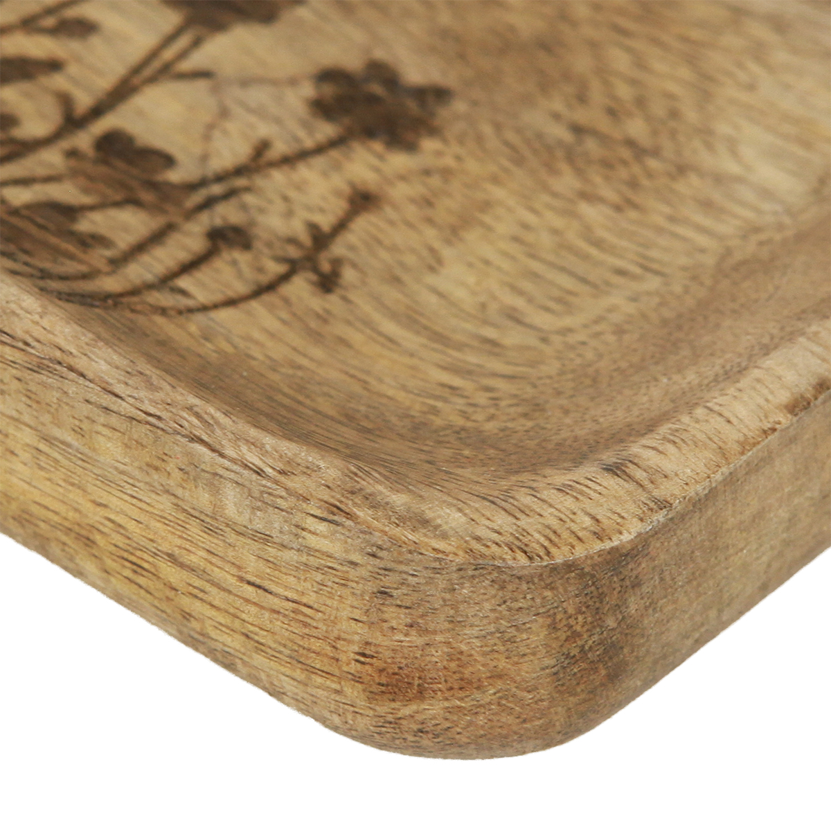 Decorative tray wood with floral pattern mango wood 20×15.5cm