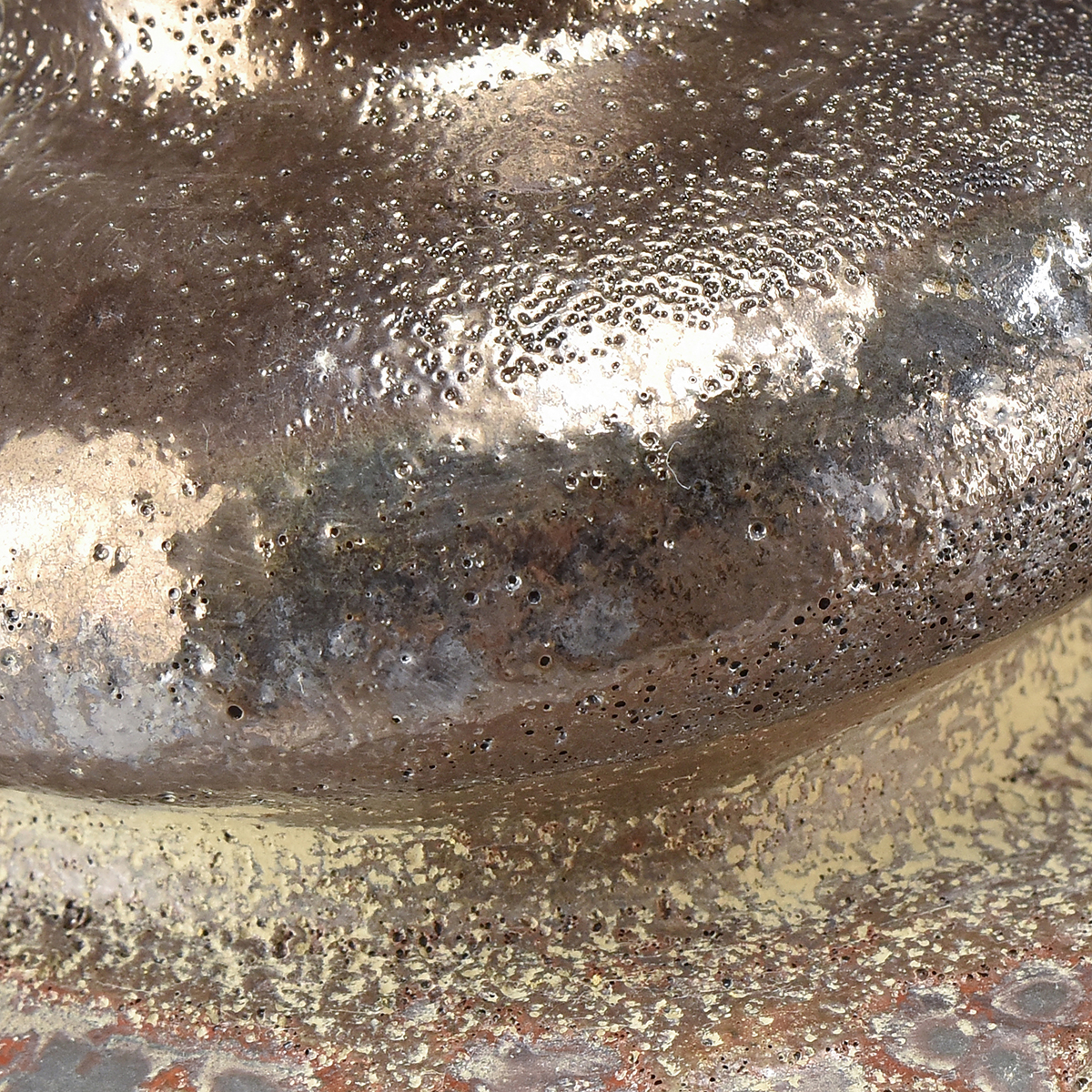 Discover the unique ceramic vase in a metallic look, which enhances any environment with its shiny finish and pebble-like design. This decorative ceramic vase is not only a vessel for your flower arrangements, but also an elegant design highlight for your home.