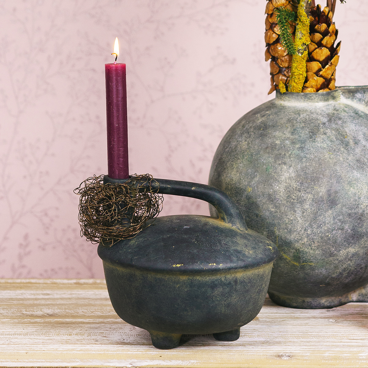 This designer vase in anthracite impresses with its high-quality workmanship, elegant shapes and unique patina, which gives each piece an individual appearance. Whether as a puristic living room decoration, filled with flower arrangements made of artificial flowers or as a stylish element in exotic interiors - our antique vase is a real all-rounder.