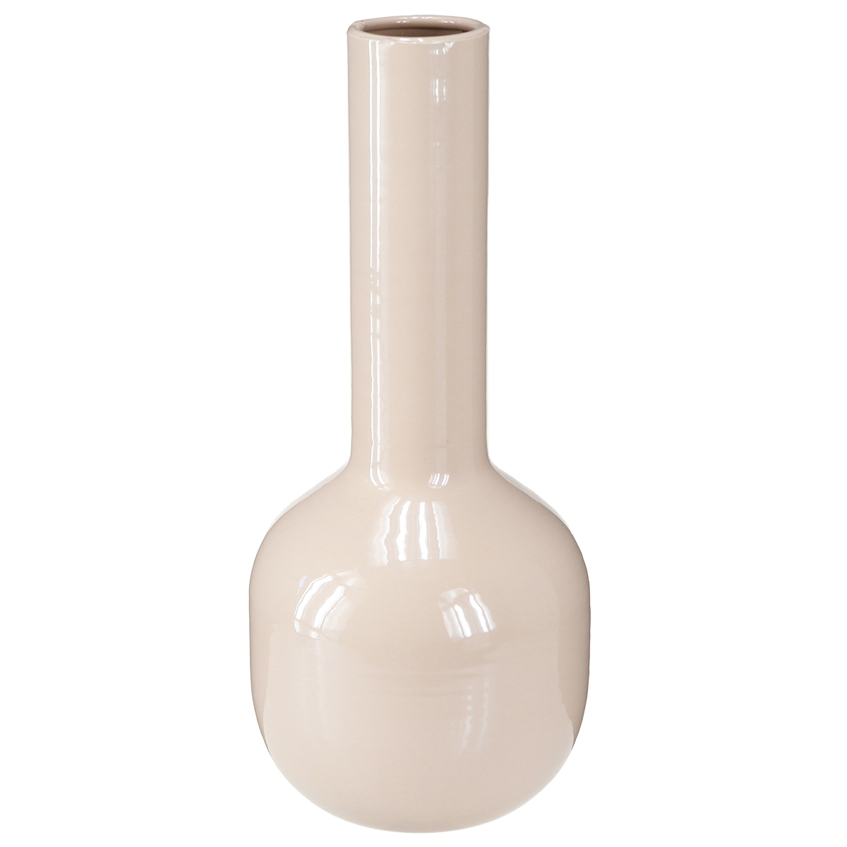 Our elegant decorative vase made of metal in light brown with an enamel coating combines modern design with timeless elegance. This vase with a height of around 25.5 cm is not only a decorative eye-catcher, but also a versatile home accessory that adds a touch of class to any room. The long, narrow neck and the bulbous base make this vase a real highlight that works both on its own and in combination with other decorative elements. The warm cappuccino color harmonizes perfectly with natural tones and is ideal for spring or summer table decorations in green, brown or white. Decorate your rooms with this unique vase and add a harmonious touch to your interior atmosphere. This metal vase goes perfectly with modern and classic furnishing styles and is a must for every stylishly furnished home.