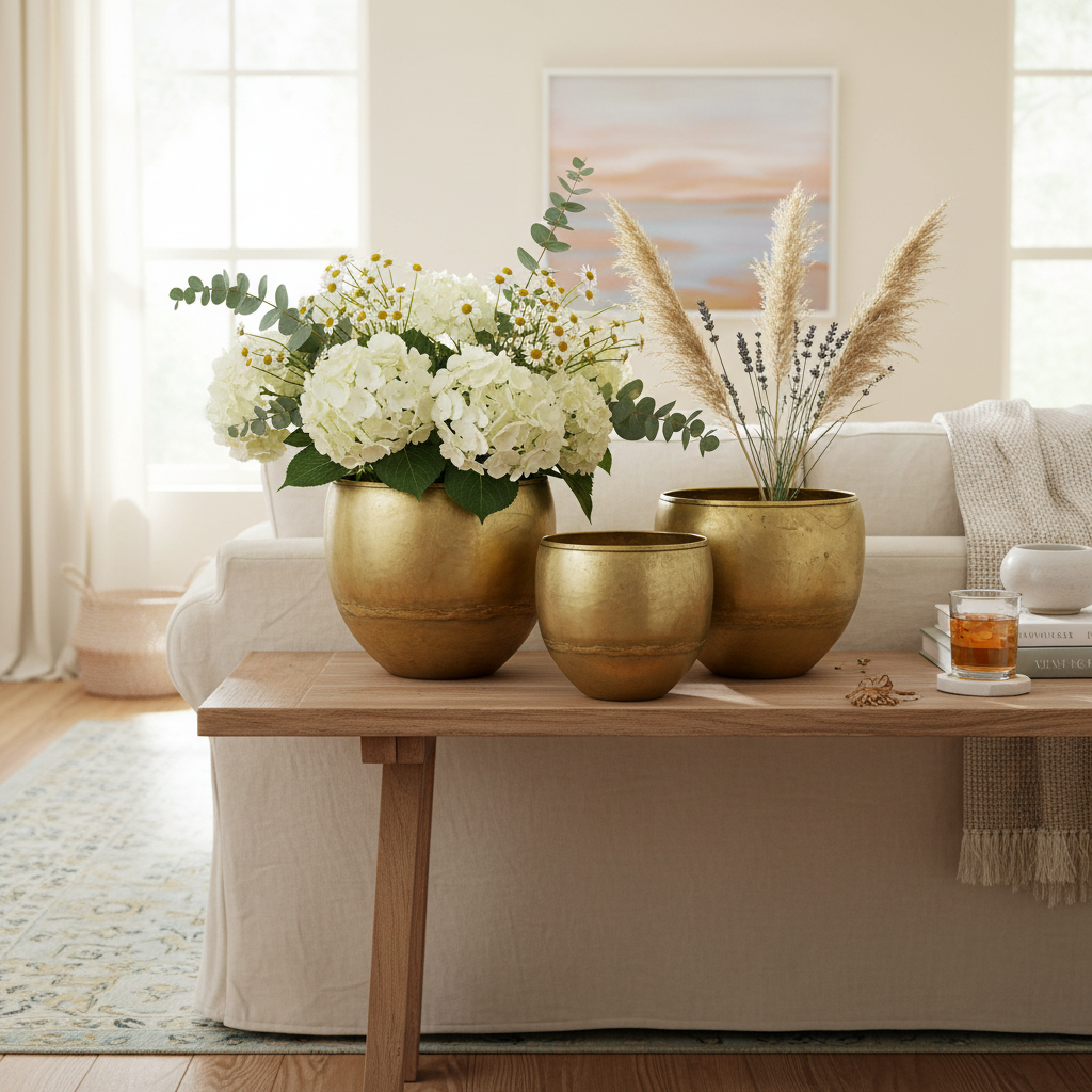But of course you can use the entire volume by filling the metal vases with decorative sand or decorative stones. Alternatively, you can put floral foam in it and fill the metal container with artificial or dried flowers as you like.