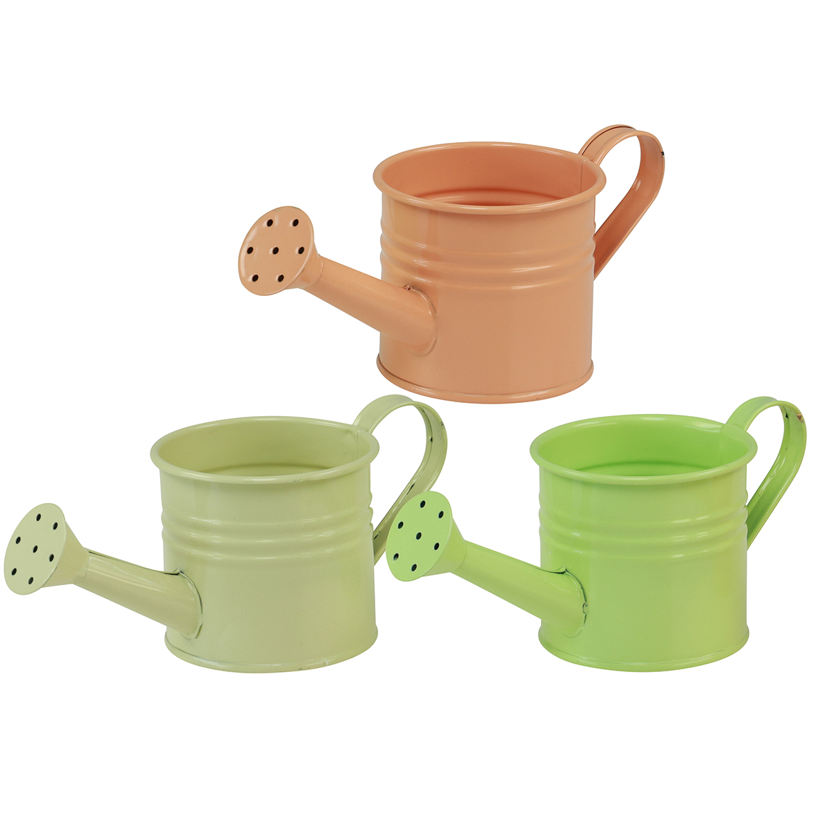 You will receive 9 watering can decorations in the colors yellow, green and orange. The metal planters are sorted 3 times.