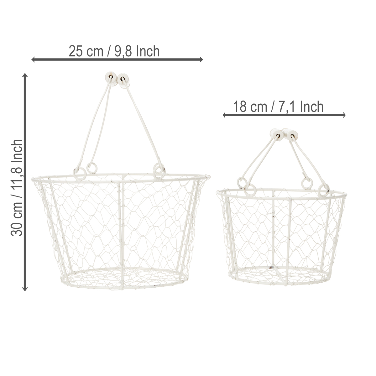This white wire basket is more than just decorative. With an impressive height of 30 cm and a diameter of 25 cm, the basket offers ample space for everything your creative soul desires. The sturdy metal structure ensures stability without appearing bulky, and the neutral white color blends harmoniously into any style. Whether it's succulents, fresh fruit, or small decorative garden lights – the possibilities are endless.