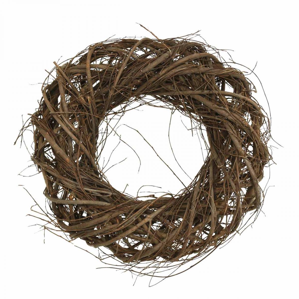 Create light spring and summer decorations with this decorative wreath of branches and vines! The elm branches and thin vines are picturesquely woven around a wooden framework that is hollow on the inside. The wooden wreath in natural brown is given a lively look that fits perfectly into your decorations.