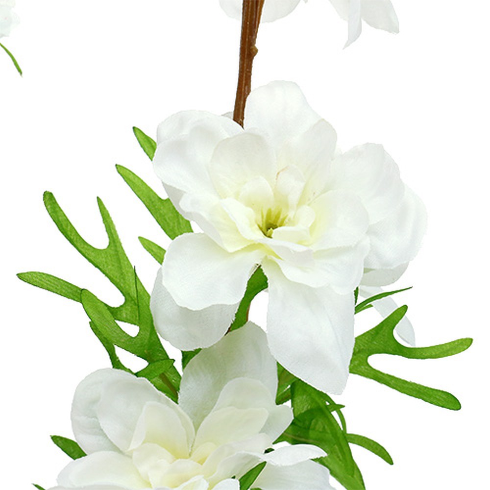 The artificial delphinium in white is about 95 centimeters long and the flowers have different diameters, between 4 and 6 centimeters. For stability, the flowering decorative plant has a metal wire in the core, which can also be easily bent so that you can adapt the plant to your decorating idea.