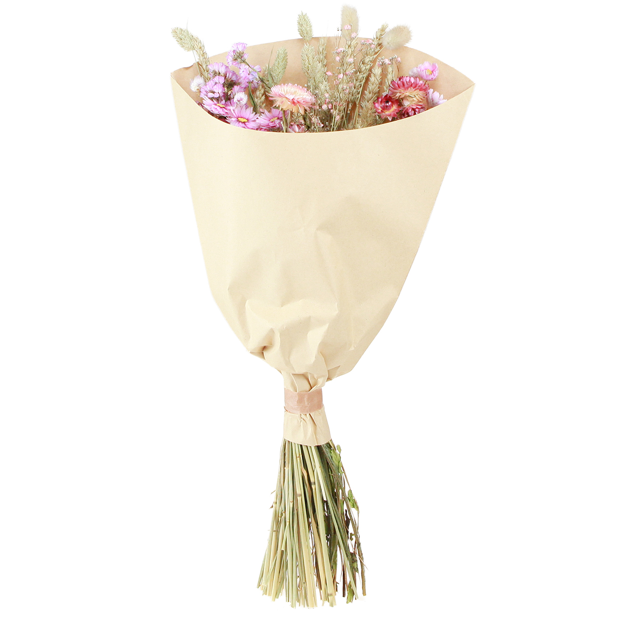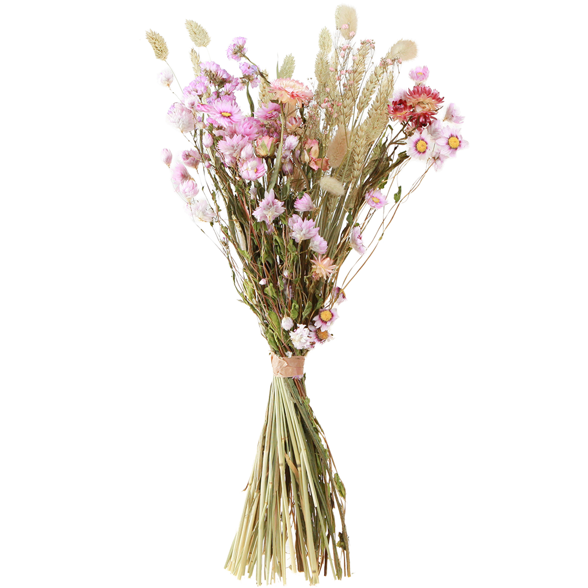 Dried Flower Bouquet Pink Strawflowers Lagurus Wheat 55cm