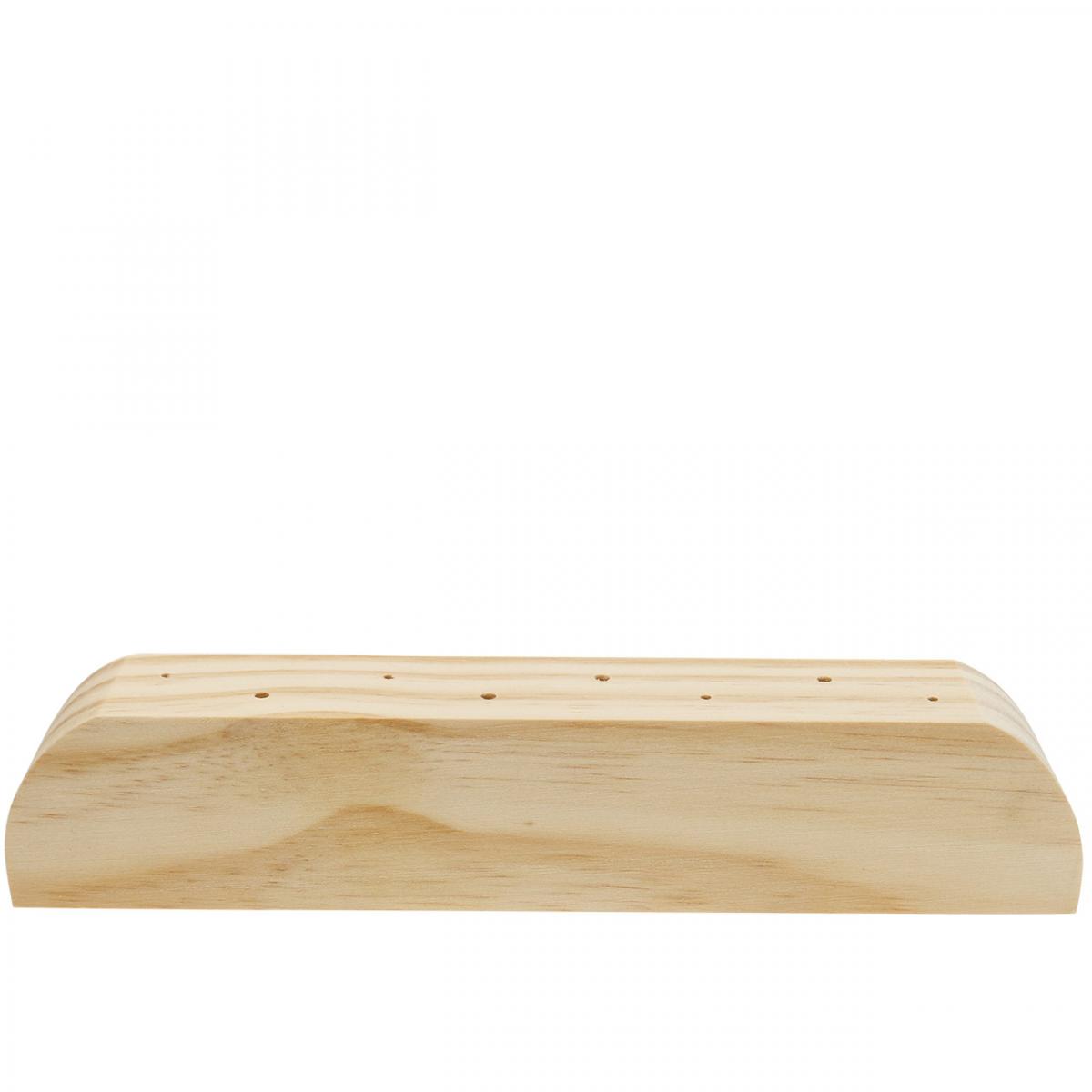 The dried flower wooden stand is equipped with a total of eight pre-drilled plug holes on the top, which have been drilled alternately in a zigzag. The flowerboard is rounded in an arch towards the narrow sides.