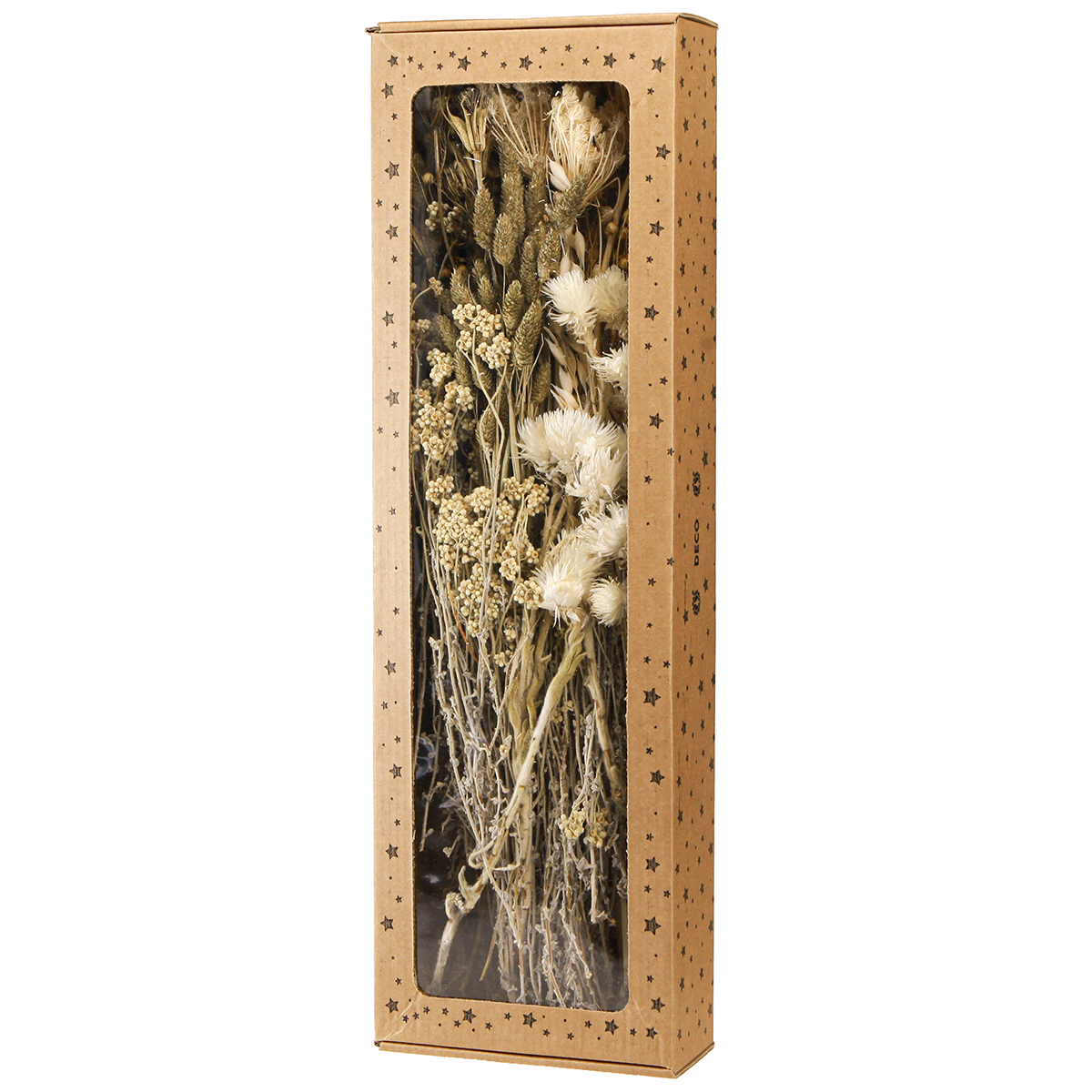 The dried flower arrangement from South Africa features cap flowers with snow-white blossoms, gold-washed phalaris and gold-washed flax with its many small blossoms, as well as bleached dill, bleached ears of corn and the decorative seed heads of Nigella sativa (black cumin). These can be beautifully presented in glass vases or as part of a larger arrangement. Combine the dried decoration with other natural materials and accessories in gold tones for a coordinated decoration. For event planners, the dried flowers are ideal as part of an elegant table arrangement that will delight guests.