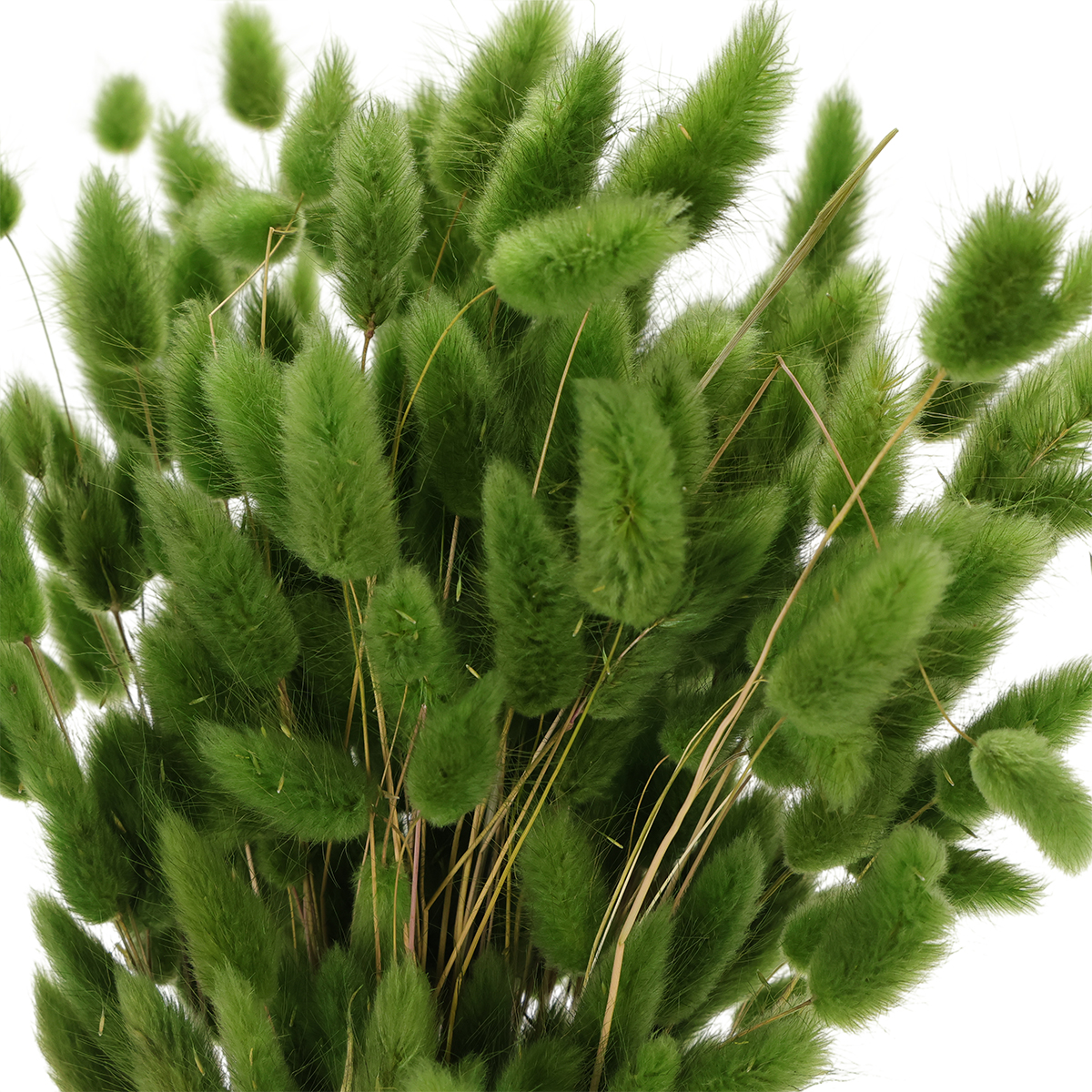 This dried Lagurus grass in olive green adds a touch of vibrancy to any boho-style dried flower arrangement. The bright green of this dried grass is one of the trendiest colors you'll see in a wide variety of dried flower arrangements.