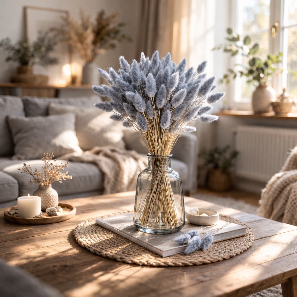 - Natural decor in Scandinavian style: Combine rabbit's tail grass with light wood tones and minimalist accessories.