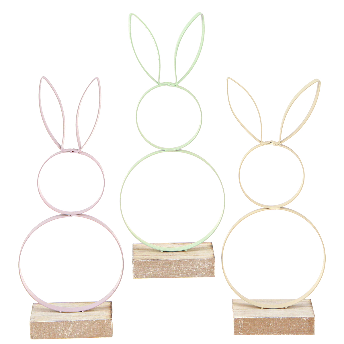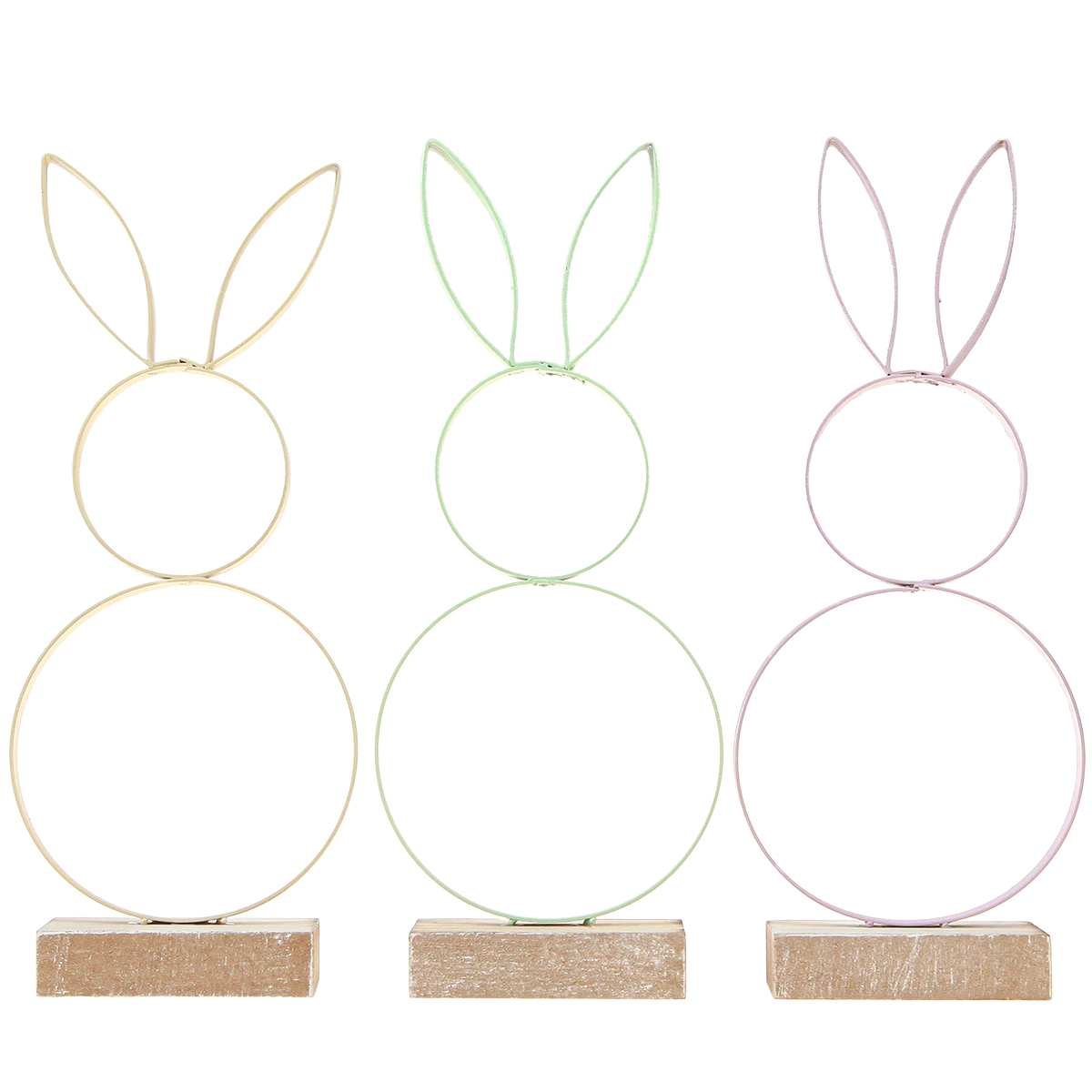 Product name: Easter Bunny Decoration Metal Wood Yellow Mint Pink H21cm 3 Pcs