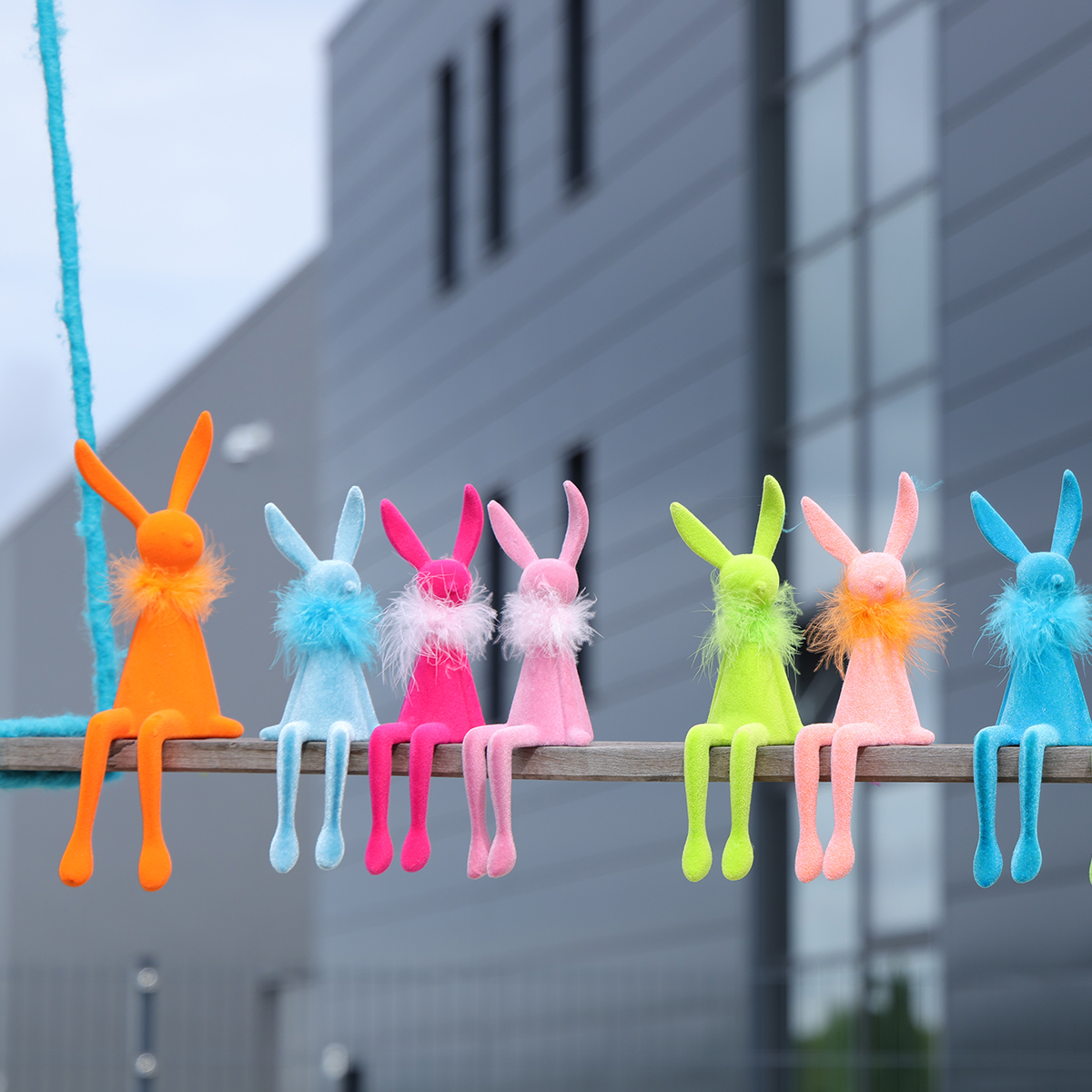These colorful Easter bunnies not only spread springtime cheer, but their velvety flocked surface also gives them a high-quality look. Made of robust plastic, they are durable and easy to place. At the same time, they impress with their modern proportions and charming appearance, which looks ideal on table edges or shelves. Looking for a fresh yet stylish Easter atmosphere? You'll love these bunnies!