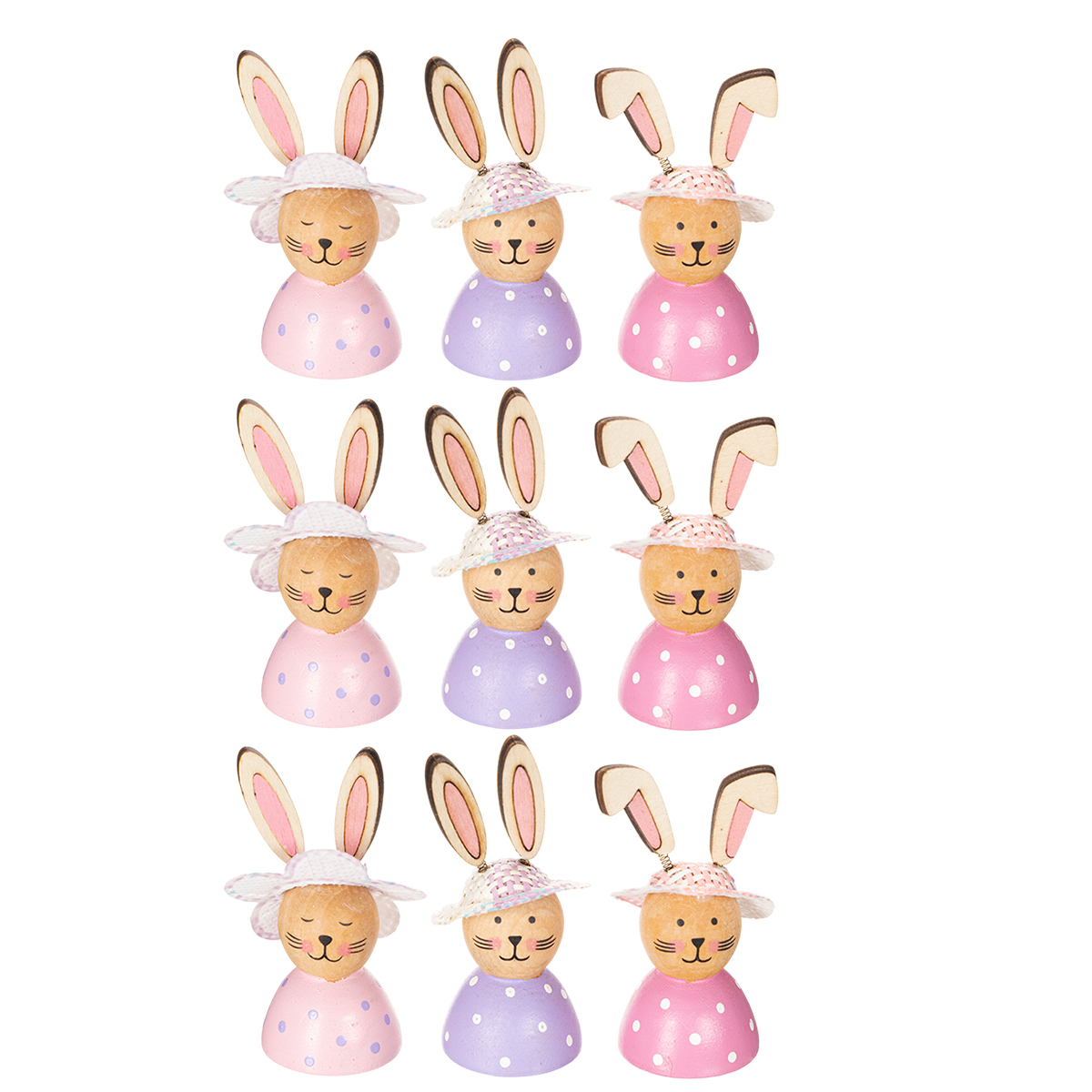 Easter bunny table decoration for spring, decorative bunnies with hats, 7cm, 9 pieces