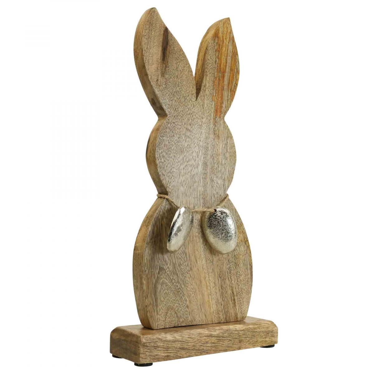Because only the most deserving Easter bunnies get the badge with the silver egg. For the Easter decoration, the bunny is made of solid mango wood as a striking silhouette and sits on a reliable stand. So the wooden rabbit is ready for the nest.
