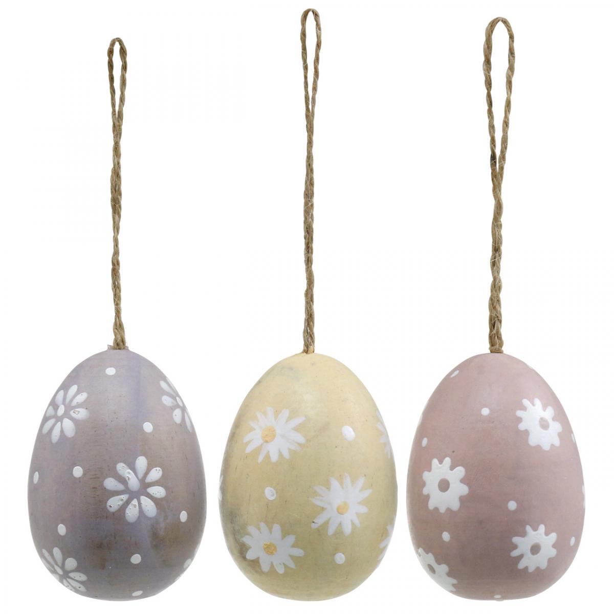 Easter eggs with flowers decoration for hanging wooden egg sorted 7cm 3pcs