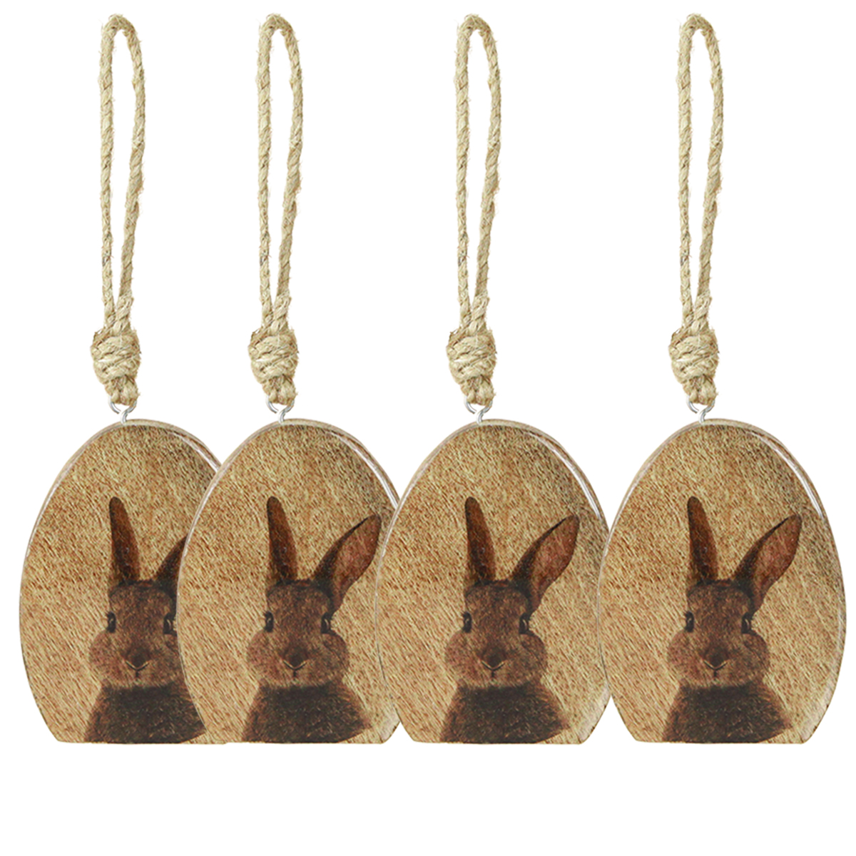 Easter Bunny Egg Hanging Ornament Wood 8×10.5cm 4pcs