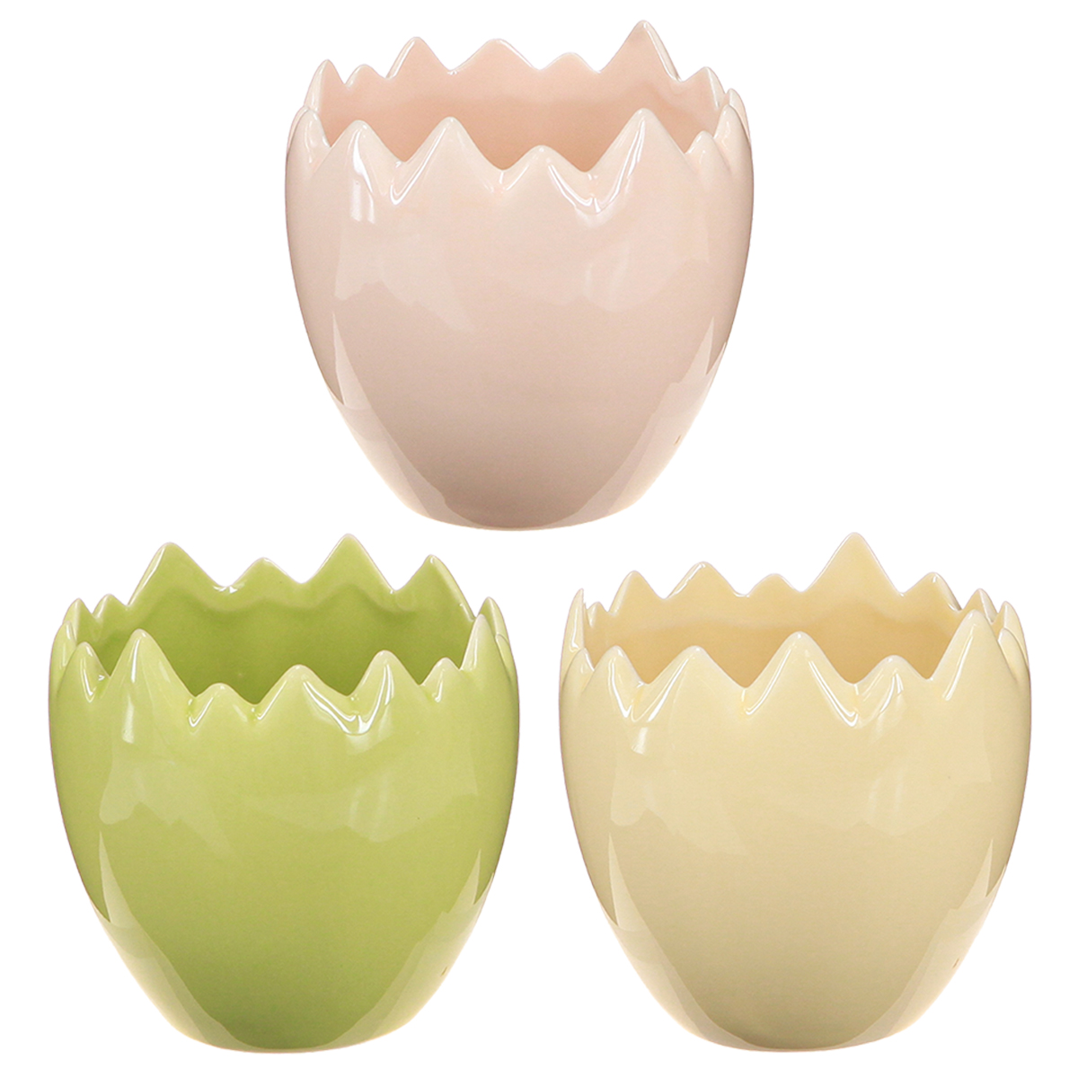 Who doesn't love to beautify their home with small, charming details? Our egg-shaped flower pots with their distressed edges add a special touch to any room! Whether on the windowsill, the table, or in a decorative arrangement, these pots offer countless possibilities for creatively showcasing small plants, spring flowers, or even Easter decorations. What windowsill doesn't shine with a hint of spring freshness when these charming containers are placed upon it? The classic combination of pastel colors—soft yellow, rosy pink, and fresh green—makes these flower pots a harmonious addition to any interior design style. And the best part: they come in a practical set of three, perfect for individual decorating ideas!