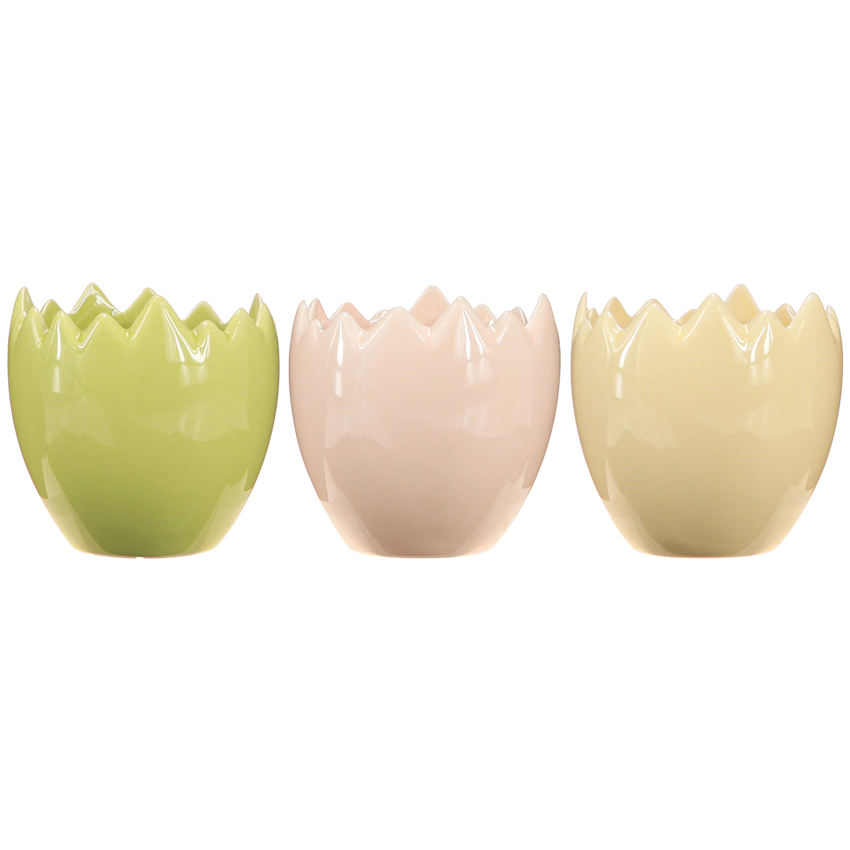 These egg-shaped flower pots, with their delicate, crackled edges, invite you to unleash your creativity. Made of high-quality ceramic, they not only have a pleasant feel but also impress with their durability. Measuring 9 centimeters in height and 8 centimeters in diameter, they are perfect for smaller plants such as succulents, herbs, or spring flowers. The soft pastel shades of yellow, pink, and green are subtle yet vibrant – ideal for interior design styles like Scandinavian, boho, or modern-minimalist.