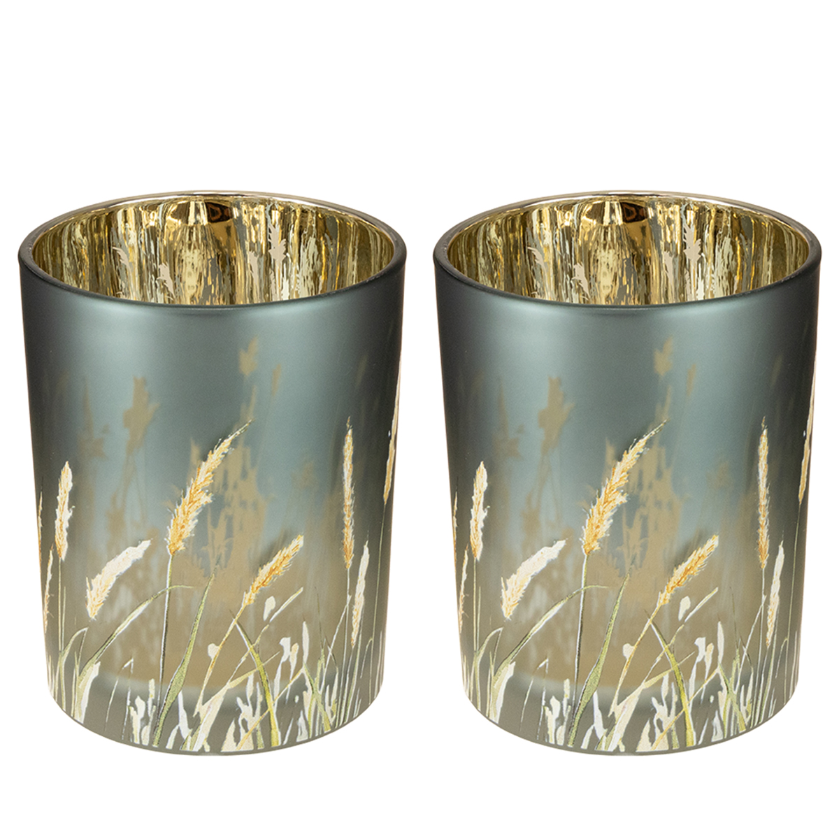 This decorative lantern with its grass motif is more than just a light source – it brings naturalness and elegance directly into your home. The sophisticated combination of the cool blue glass surface and the gold-colored mirrored interior gives it a particularly refined look. The grass motifs in soft, natural tones complete the design with a rustic yet modern touch, making this lantern a must-have for any interior style. Whether in a Scandinavian design, a country style, or as a highlight in a more modern setting – this lantern always looks great.