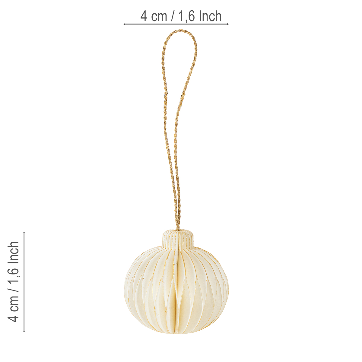 The bright white, accentuated by fine matte gold edges, creates a harmonious and timeless overall look. Whether on large Christmas trees or as a charming decoration on a tabletop Christmas tree – this hanging ornament made of honeycomb paper is sure to catch the eye and add a touch of style.