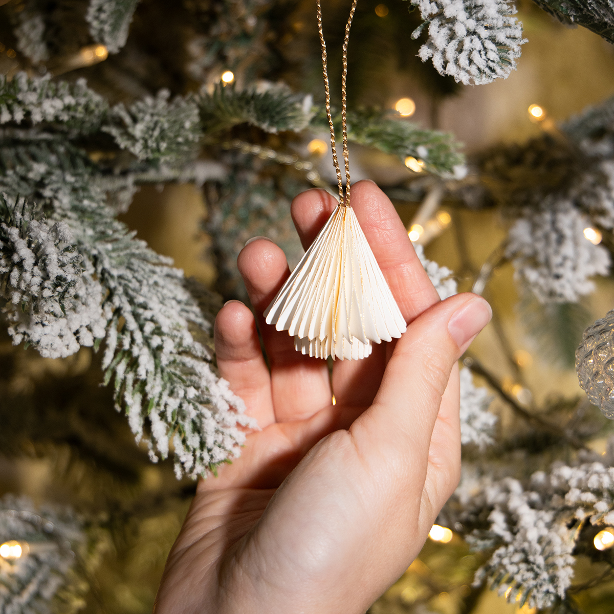 These decorative ornaments aren't just beautiful on the tree. They're also perfect for personalizing gifts, adding a finishing touch to Advent wreaths, or enhancing other festive arrangements. Thanks to the matte gold cord, they can be placed anywhere. The honeycomb paper – inspired by Scandinavian minimalism – looks natural, modern, and yet luxurious. These mini Christmas ornaments offer a wonderful way to give your home a personal and stylish touch this Christmas.