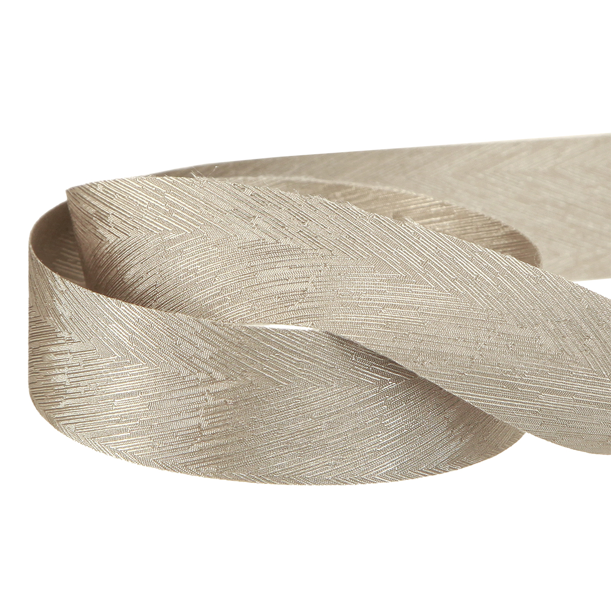 Discover the fine silver silk ribbon in a classy feather print design, which will enhance any holiday arrangement with its shimmering elegance. This high-quality silver silk ribbon is 25mm wide and 15m long, making it ideal for versatile decoration options and festive occasions.